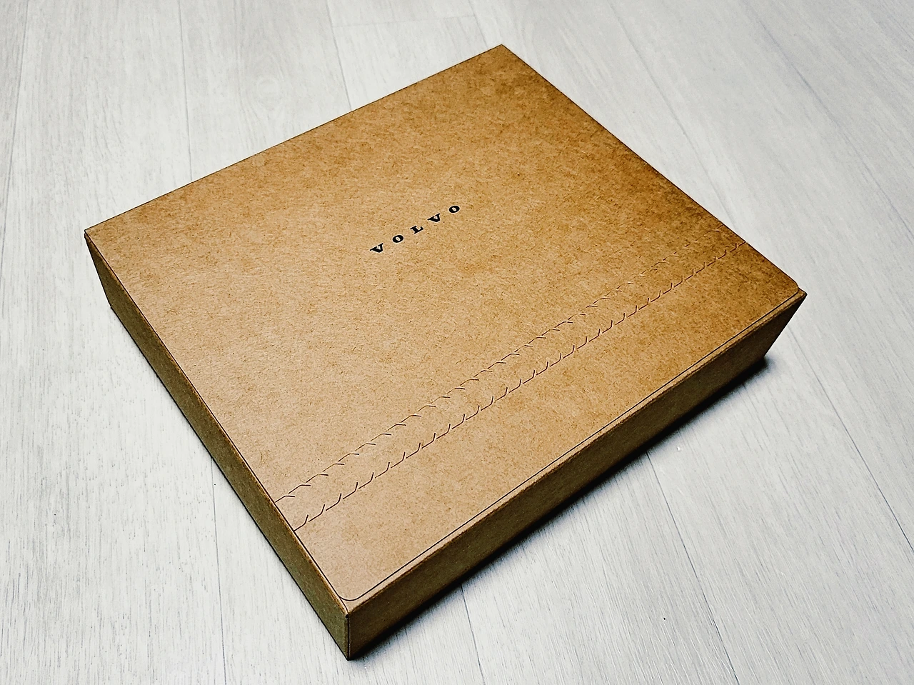 2023 볼보 캘린더&다이어리 셋트(이하 볼보 캘린더 세트)의 패키지입니다. 볼보의 굿즈는 대부분 이런 소재의 종이 패키지를 사용하더라구요, 브이.오.엘.브이.오! VOLVO 로고의 심플한 중앙배치도 익숙합니다. 2022년 볼보 캘린더는 타이벡 패키지에 담겨 왔었지요