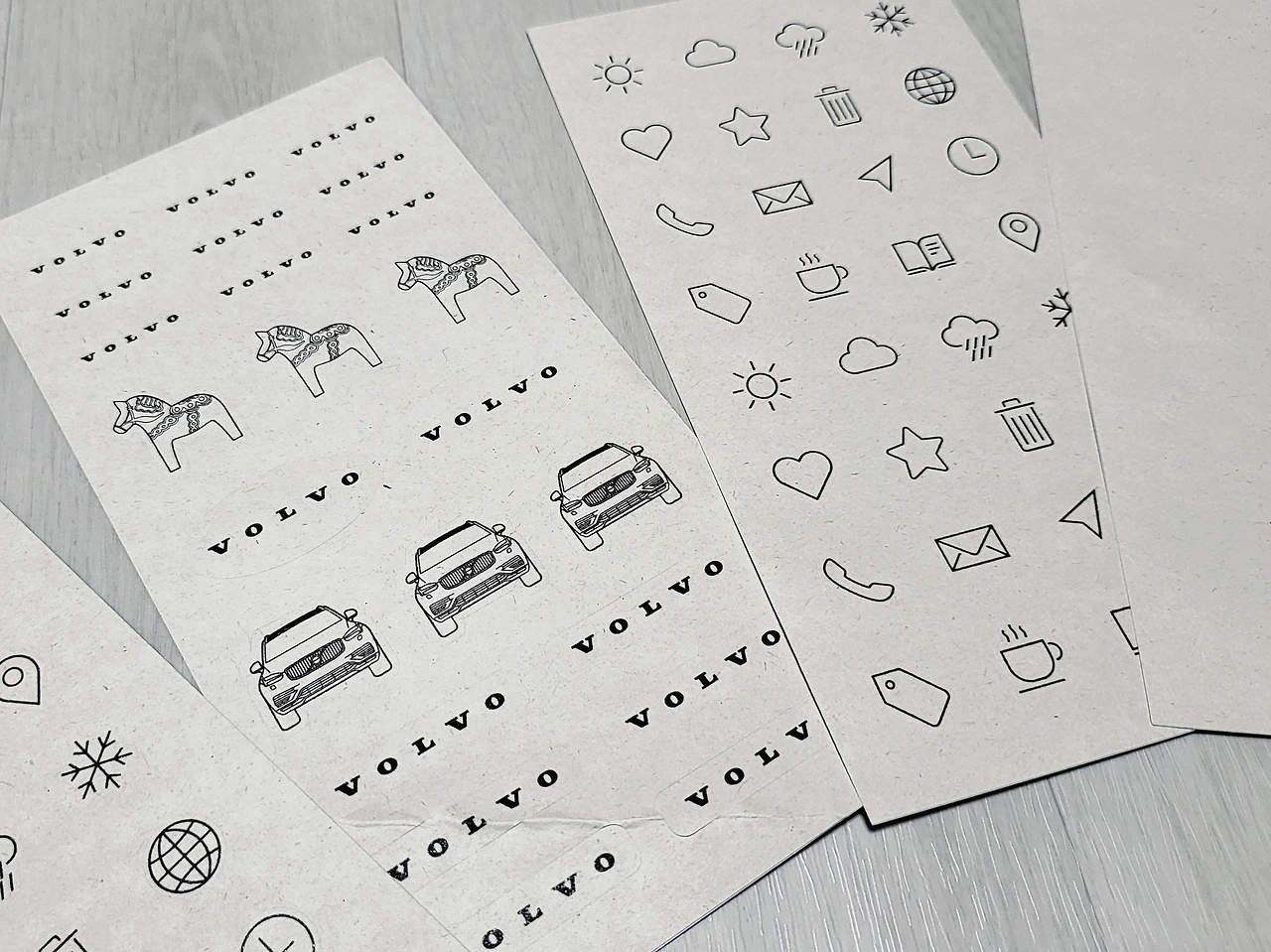깨알깥이 귀엽고 예쁜 볼보 메모 스티커입니다. 날씨와 사물의 라인아이콘 그래픽의 스티커, 무지배경의 모양만 있는 스티커(맨오른쪽)그리고, 볼보차량의 앞모습의 라인그래픽 스티커, 스웨덴의 행운을 가져다 주는 말인 달라호스(꼬리가 없는게 특징) 스티커, 볼보로고 스티커를 메모 옆에 붙이면 갬성갬성, 웨덴웨덴, 볼보볼보 할 것 같네요. 이건 스티커를 좋아하는 딸이 보더니, 자기가 가져간다고 합니다. 흑 ㅠㅠ 그래.. 아빠가 양보해야지!ㅎㅎㅎ
