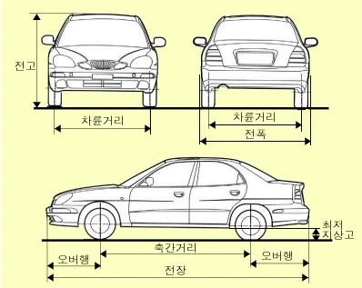 최저지상고는 접지면과 자동차 중앙부분의 최하부와의 거리로서 타이어, 휠, 브레이크 부분을 제외한 값이라고 하더라고요.