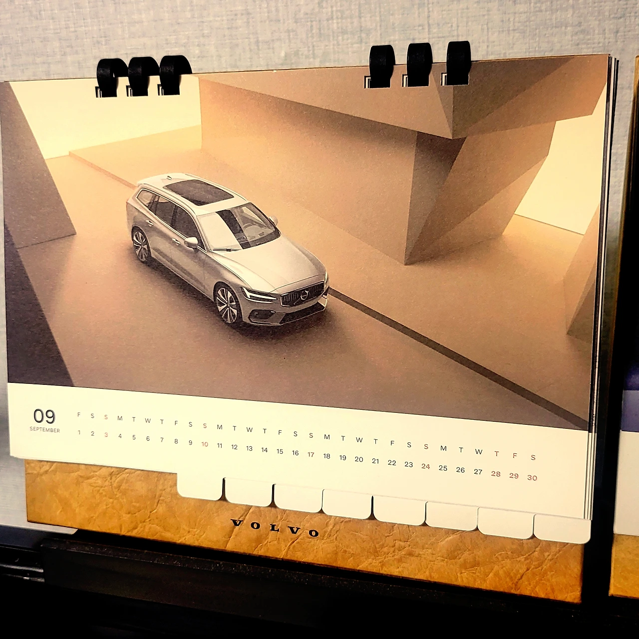 9월의 볼보 달력 이미지는 무엇일까? 설레는 마음으로 넘겨 보니 실버던 컬러(코드: 735)V60이 머흣진 각도로 눈을 자극하는군요!