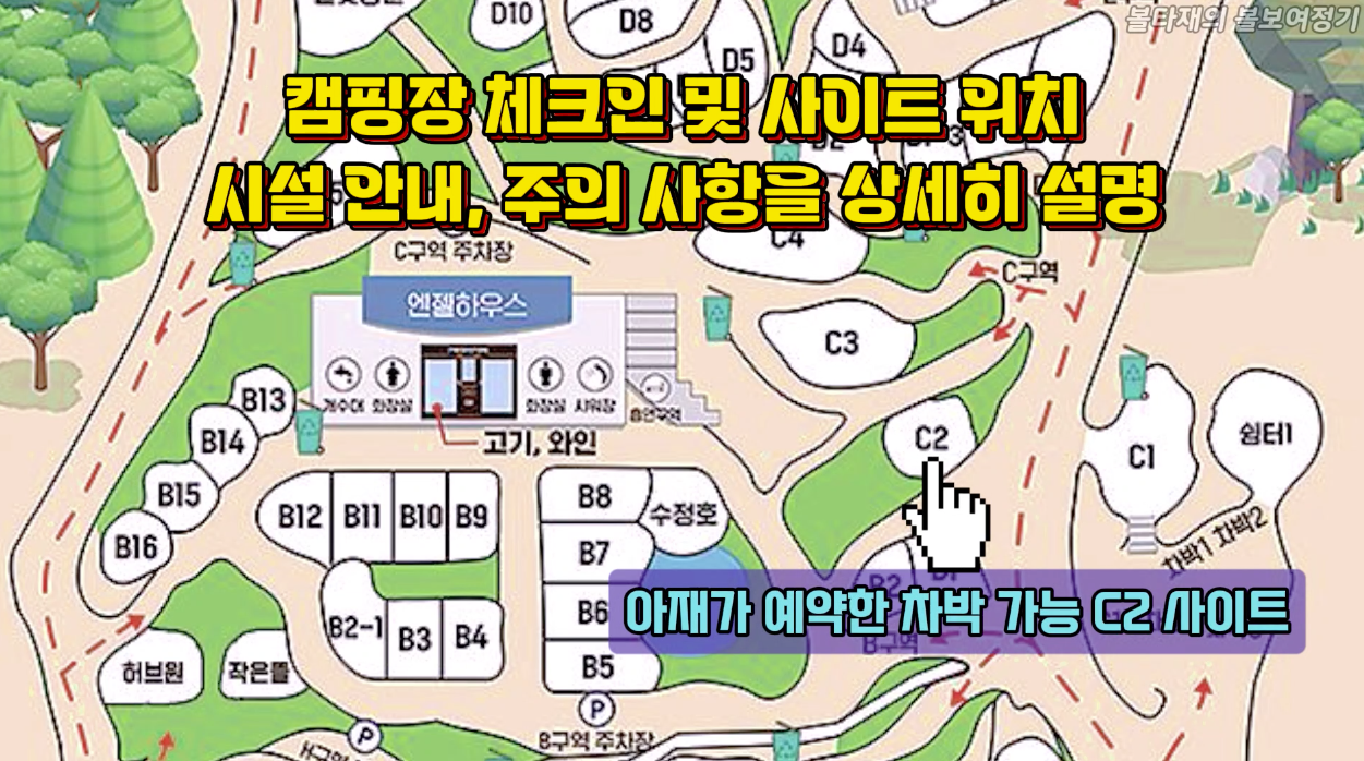 제가 예약한 캠핑사이트는 C2입니다. 이 C구역이 차박도 가능한 사이트라고 하더군요.