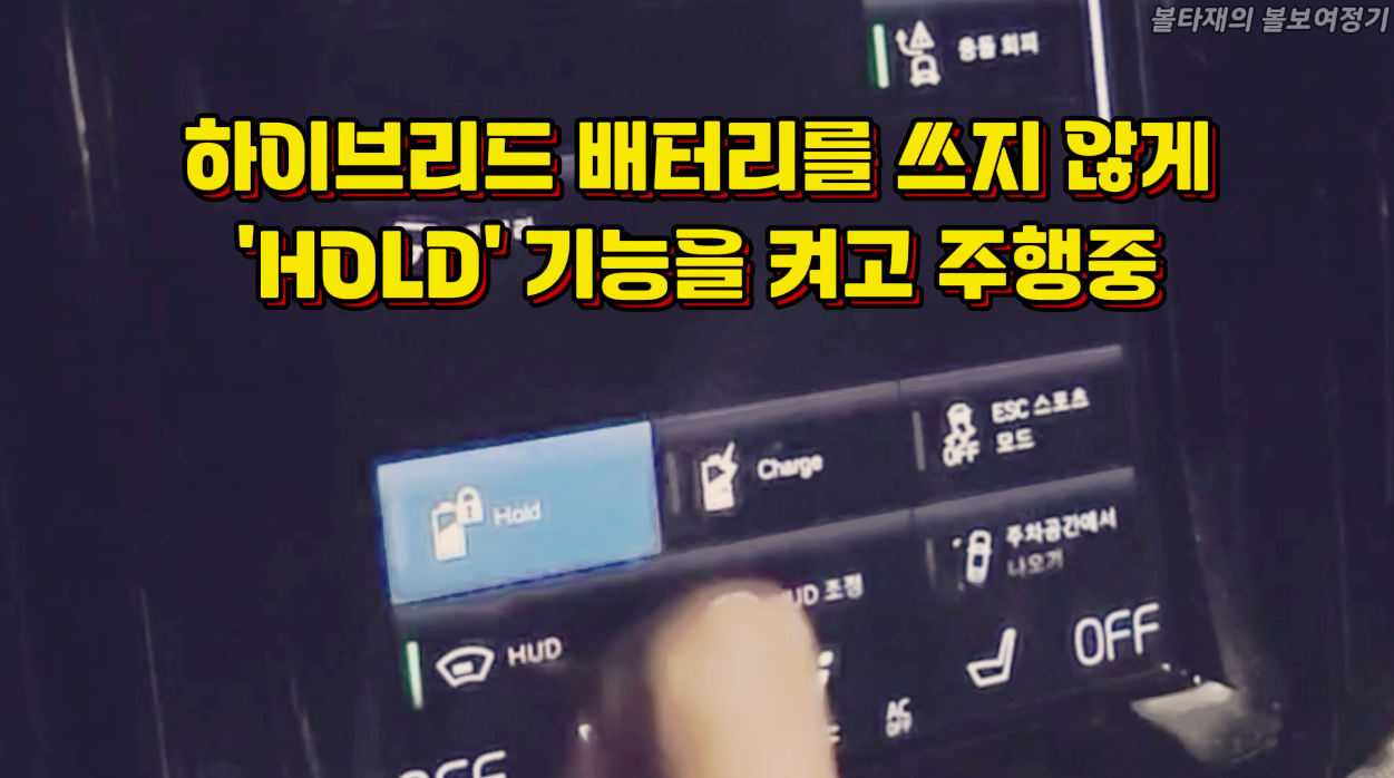 그래서 캠핑장 가는길은 전기에너지를 사용하지 않으려고 'HOLD' 기능을 켜고 갔습니다... 만.. 사람의 습관이란게 참 무섭지요. 홀드기능을 안쓰다보니 처음부터 출발시 켜는것을깜빡하고 몇키로 전기를 쓰고 불현듯 생각나서 켰습니다. 소모량은 그리 크지 않았네요. ㅎㅎ