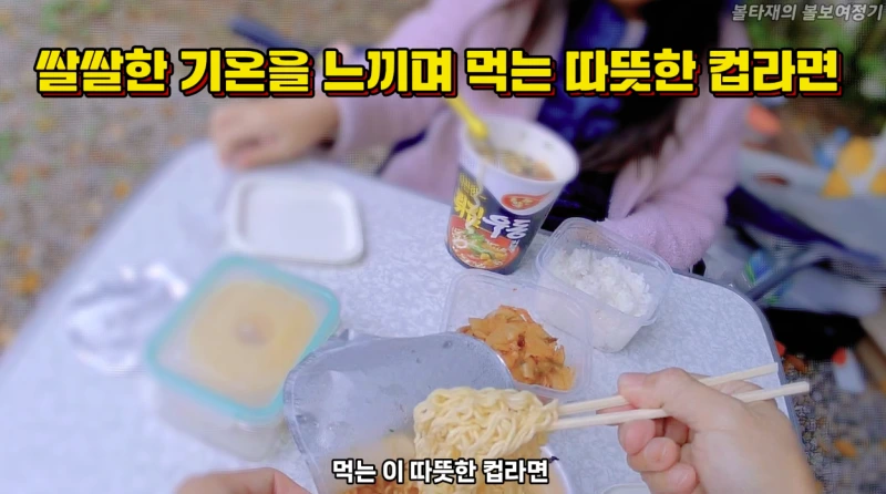 새벽에 캠핑장을 가볍게 산책하고, 아침식사를 했습니다. 컵라면과 흰쌀밥, 후식은 파인애플입니다. 아침의 쌀쌀한 기온속에서 먹는 뜨거운 컵라면을 먹는 이맛! 이 늒낌 뭔지 아시죠? ㅎㅎㅎ 죠습니다!