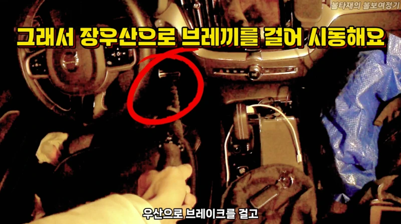 새벽 2시 50분즘에 일어나서 찬공기가 조금 느껴져서 하이브리드 모드로 시동을 조용히 걸고 히터를 한번 켰습니다.시동걸때 팁은 장우산으로 브레끼를 밟아주는 것입니다. 21년형인 제 XC60은 티맵도 지원 안되고! 볼보카스앱도 지원 안되고!! 2열에서 1열로 넘어가기가 어렵거든요. 그렇다고 문을 열고 이동하면 냉기가 차안에 들어오니 이방법도 좀 아니고요. 이럴때 장우산이 참 죠습니다! 저는 볼보 장우산으로 해결 ㅎㅎ