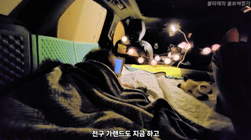 XC60안에서 공간을 둘러보니 꽤 아늑하더군요. 아내가 사준 전구 가랜드로 분위기와 갬성도 좋고요. 드디어 개시한 볼보크루 켐핑 무드등도 좋고요.