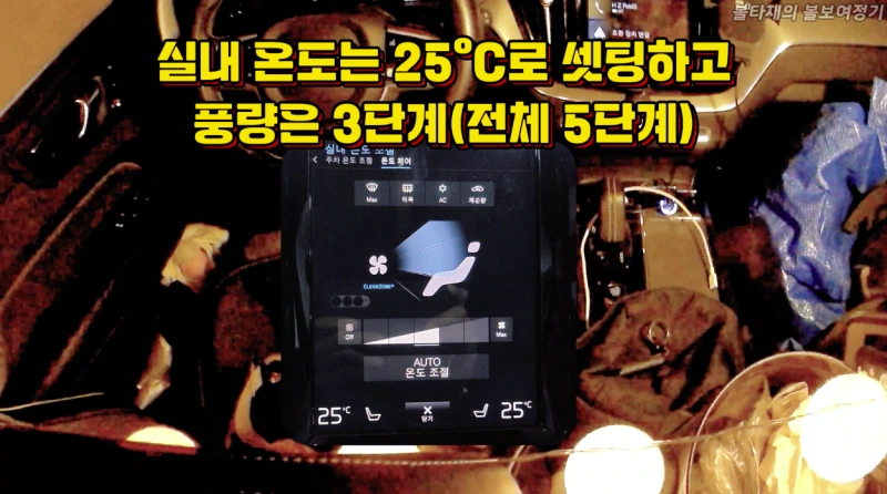 매너타임이 되기전에 엔진시동으로 히터를 바짝 가동했습니다. 25도로 맞춘 후 풍량은 3칸으로 맞추었습니다. 차안이 훈훈하게 될 무렵 시동을 끄고 테일게이트 문을 열고 들어갔습니다.