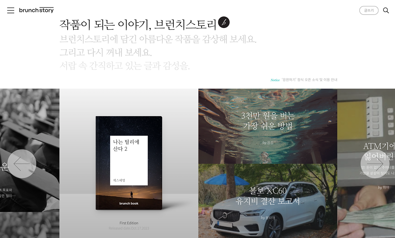 사실 브런치는 저에게 이상한 방식으로 포기하지 않고 브런치에 글을 쓰게끔 독려를 하고 동기부여를 주더라고요. 이게 에디터님께서 관리하시는 건지.. 아님, 유튜브 알고리즘 처럼 브런치 알고리즘이 있어가가... 에디터를 가장한 AI 알고리즘이 동작하는 건지, 제 글의 조회수를 떡상 시켜준 적이 여러번 됩니다. 다음 메인에도 막뜨고... 다른 볼보 오너님께서 알려주셔서 뒤늦게 알게된 경우도 있고요... ㅎㅎ 그럴때 마다 '안희 이건 뭐지? 이글이 왜? 도대체 왜??' 라는 불가시리한 의문을 가지곤 했죠. 그러다 보니... 브런치를 포기할 수 없게 만드는 묘한 힘과 동기부여가 발생하곤 했습니다. 아 물론, 작가를 하나하나 살피면서 관리는 하시지 않겠지요...(정말 하나하나 살피신다면 에디터님은 그야말로 도덕책!) 콘텐츠가 뭔가 요구사항에 들어맞았으니 떡상도 되는 거고 이렇게 에디터픽으로도 올라가는 것 아니겄습니까?