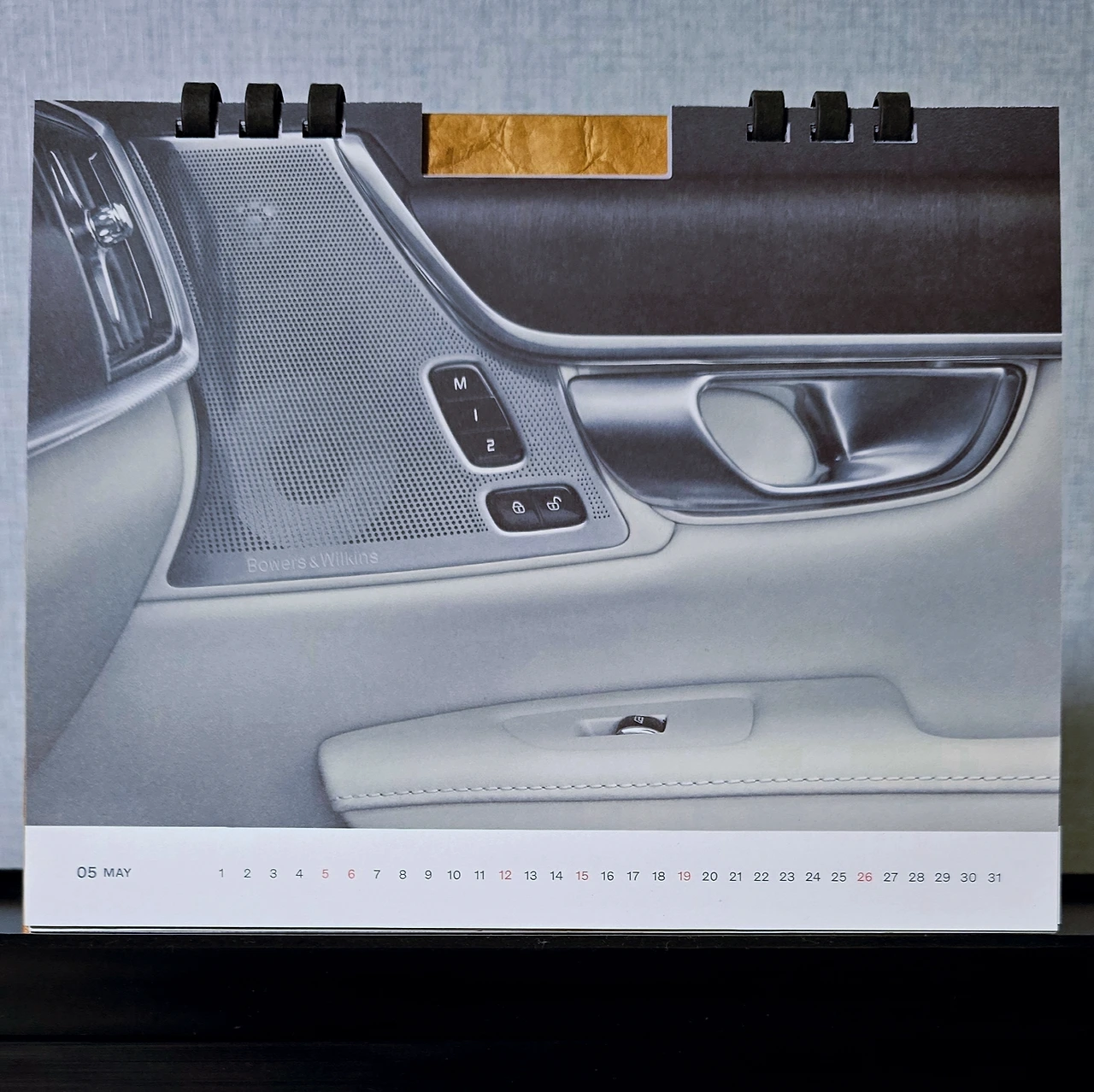 가정의 달 5월의 볼보 달력의 이미지는 블론드 인테리어의 S90 또는 V90의 도어 이너패널입니다.