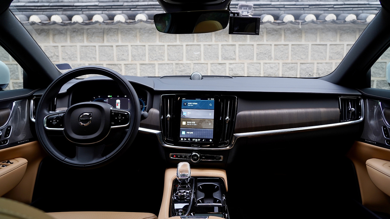 시승차는 볼보 S90 리차지 PHEV다. 엔진에 모터를 더해 전기차처럼 59km 거리를 주행할 수 있고 시스템 합산 출력은 455마력에 이르는 독특한 차다. 괴물같은 성능을 가졌는데 차체는 롱휠베이스의 편안한 세단이다. 뒤에는 승차감을 위한 에어서스펜션까지 들어갔다. 앞자리, 뒷자리 모두 앉아봐야겠단 욕심이 든다.