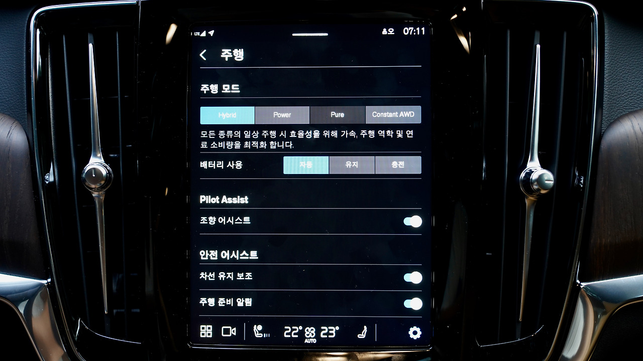 운전자를 보조하는 이 기능은 고속도로에서의 운전 피로도를 크게 줄인다. 부산까지 가는 길에서 전체의 약 70%는 드라이버 어시스턴스를 활용하며 달렸을 정도다. 앞차를 감지하고 거리를 조정하고 멈추는 것까지 매우 신뢰도가 높다. 볼보자동차코리아가 2016년 SPA플랫폼을 탑재한 XC90 신차를 출시하면서 선보였던 기능인데 지금은 상당히 많은 자동차에서 사용하는 기능이다.