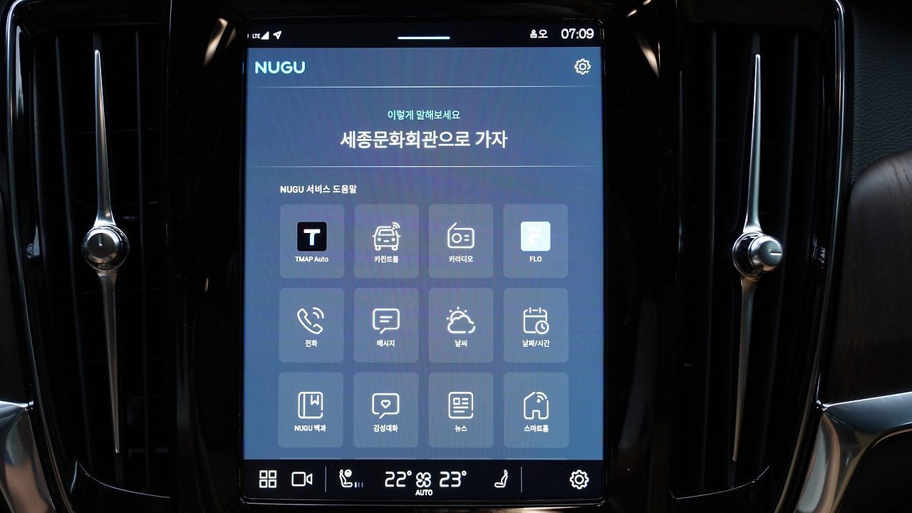 안드로이드 OS를 사용하는 장점은 눈에 띈다. 볼보에 들어간 내비게이션이 우리가 스마트폰에서 흔히 쓰는 ‘TMAP’이다. 여기에 AI가 음성을 인식하는 ‘누구(NUGU)’도 들어갔다. ‘아리아~’라고 부르면 AI가 대답한다. 길안내는 물론이고 온도 설정, 음악 재생까지 말로 해결할 수 있다.