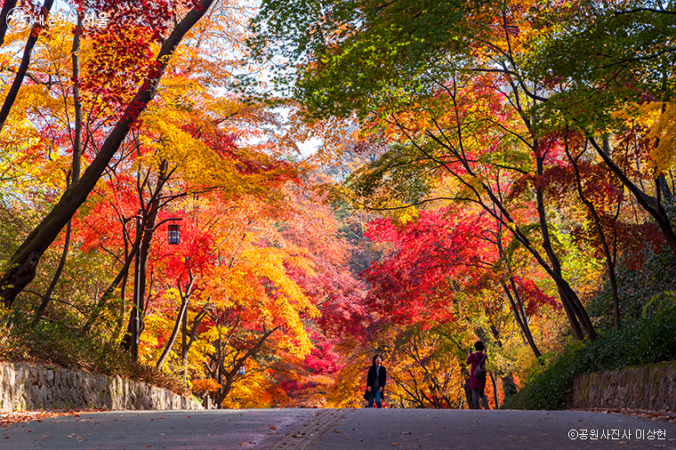 가을 단풍 여행이라고 하면 많은 사람들이 등산을 먼저 떠올린다. 그러나 산에 오르기 부담스럽다면, 남산 북측 순환로 코스를 추천한다. 서울 중심에 위치한 남산은 사계절에 따라 알록달록 다양한 색깔을 입는 것으로 유명하다. 특히 가을이면 울긋불긋한 단풍잎으로 갈아입고 한껏 화려한 모습을 자랑한다. 남산 북측 순환로는 남산 1호 터널부터 남산 3호 터널까지 이어지는 코스로 총 1.5km이다. 서울 전경이 내려다 보일 뿐 아니라 데크가 잘 설치되어 가벼운 산책에는 더 할 나위 없이 좋은 곳이다.