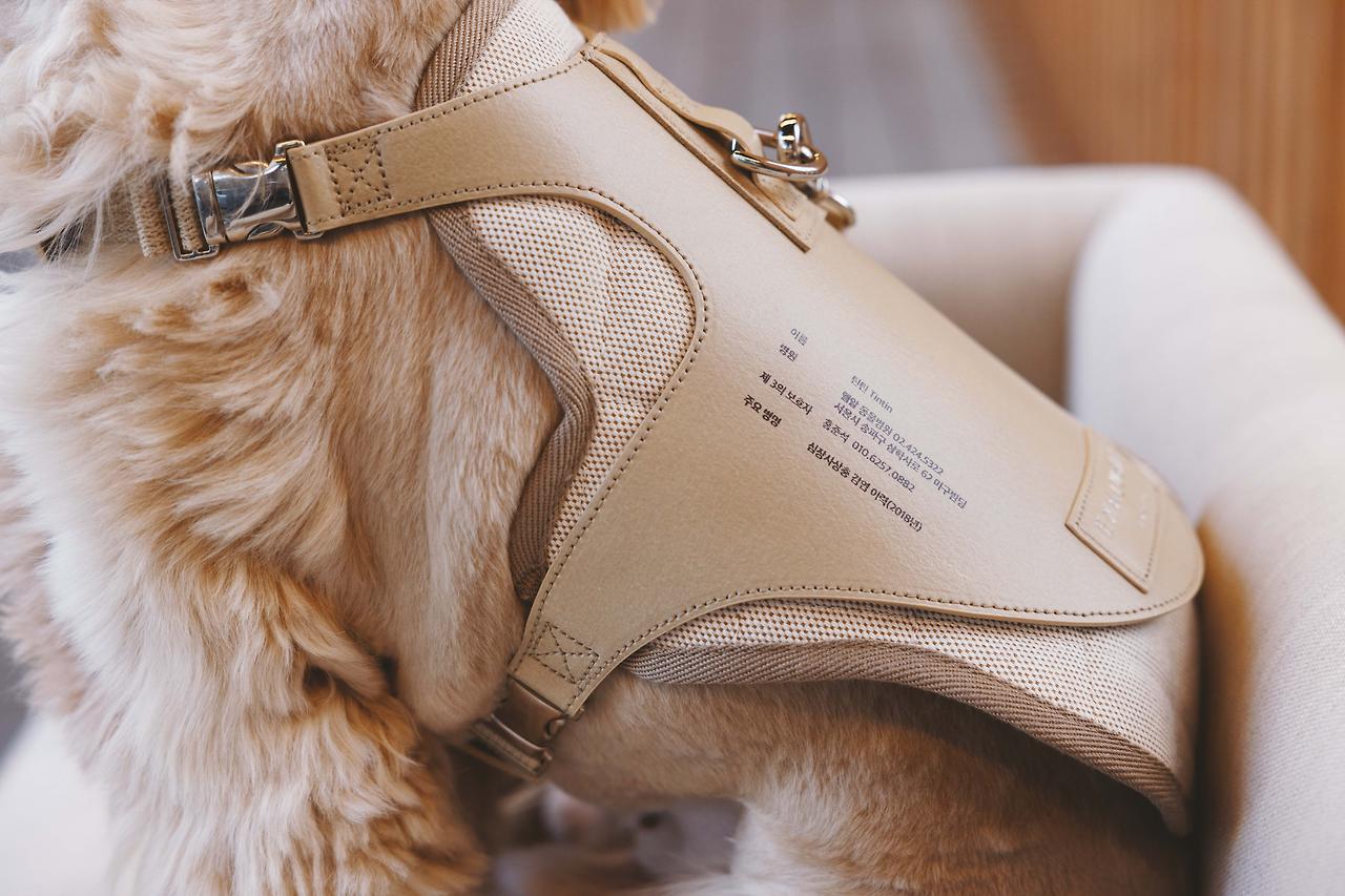 볼보자동차코리아는 세이브 시트 외에도 반려동물 안전을 위한 다양한 액세서리를 선보였습니다. 대표적으로 사고 시 반려동물의 빠른 구조를 위해 보호자 이름과 의료 정보, 병원 등 주요 정보를 각인한 하네스 세트(볼보 세이브 태그)를 내놓았는데요. 이 역시 반려동물을 위해 부드러운 면 소재 패드를 사용함으로써 피부 쓸림을 방지할 뿐 아니라 비건 한지 가죽 소재로 제작해 지속가능성을 고려했습니다.
