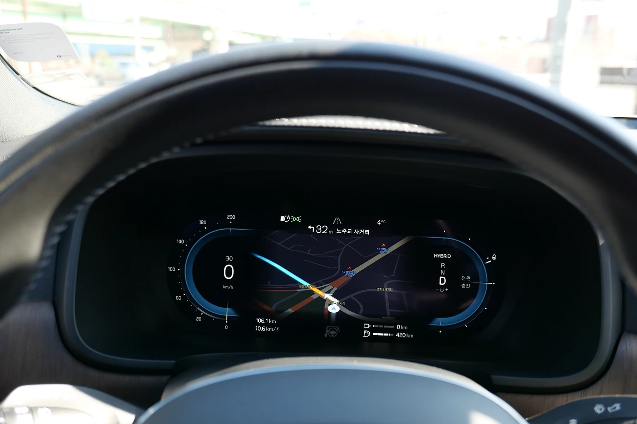 차에 올라타자 베이지 컬러의 부드러운 나파 가죽 시트, 천연 나뭇결무늬의 데코 인레이로 장식된 우아한 실내가 눈에 들어온다. 북유럽 거실을 연상케 하는 따뜻하면서 모던한 공간이 햇살과 어우러지자 절로 기분이 좋아졌다. 이 와중에 유독 기어노브가 고급스럽게 반짝이는 듯해 살펴봤다. 스웨덴 왕실에 납품하기로 유명한 크리스탈 브랜드 오레포스(Orrefors) 아닌가. 이런 작지만 고급스러운 디테일까지 더해져, 파주로 향하는 길이 유독 여유롭고 편안하게 느껴졌다.