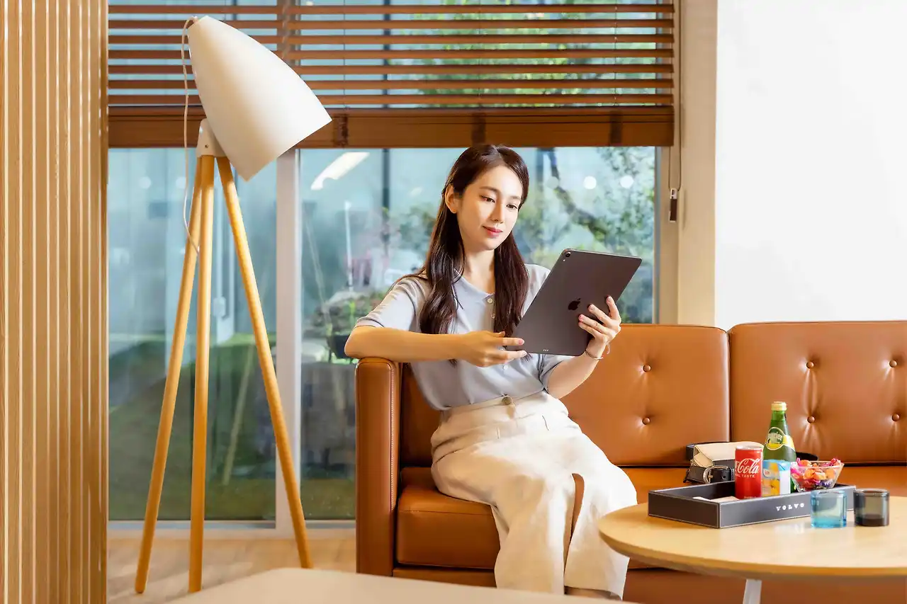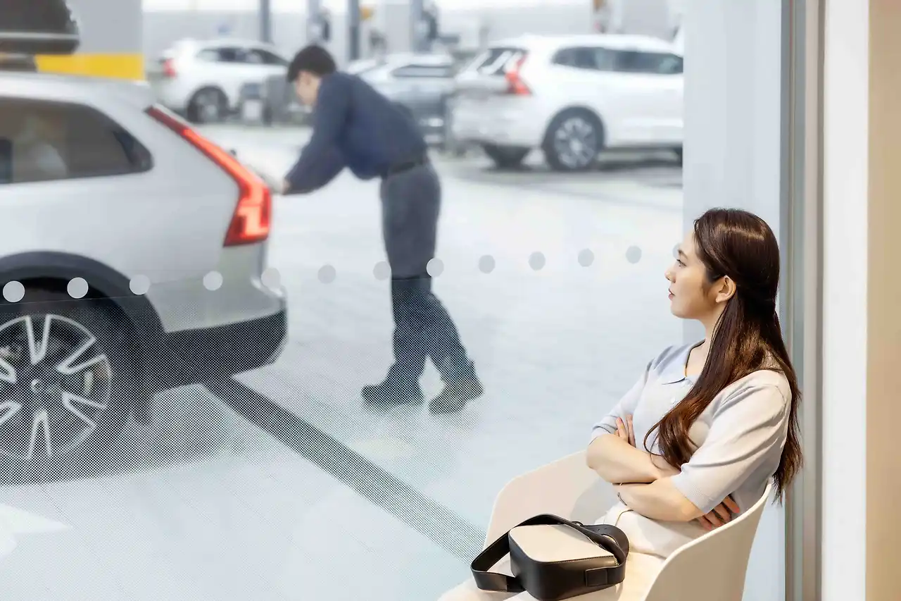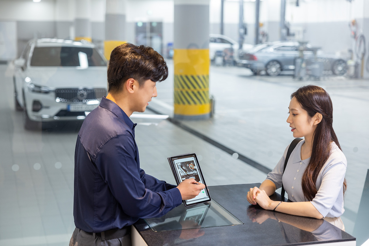 수리가 진행되는 동안 라운지에서 간단한 다과를 즐기거나 태블릿을 통해 영화, 드라마 등을 감상하며 푹 쉴 수 있어요. 이밖에도 ‘헤이 볼보(Hej Volvo)’ 앱, 혹은 카카오 알림톡을 통해 정비 대기, 정비 시작, 정비 종료 등 실시간 정비 과정 알림을 받아볼 수 있습니다. 물론 정비 중간중간 테크니션이 라운지로 와서 차량 상태에 대해 직접 설명도 해드립니다.