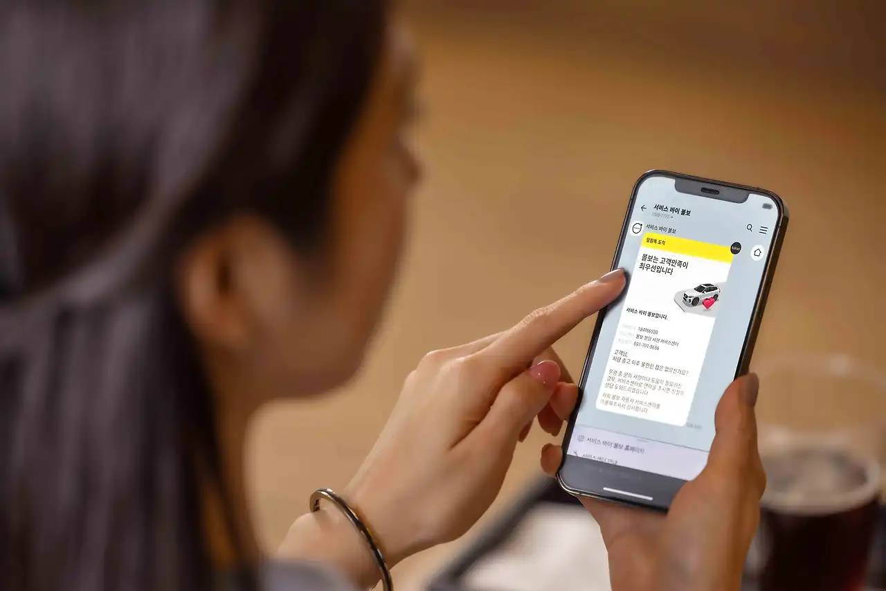 정비가 끝나면 고객은 알림톡을 통해 정비 종료 메시지를 받게 됩니다. 이때 전담 테크니션은 또 한 차례 차량 사진을 찍는데요. 고객에게 수리 내용을 설명하기 위해서입니다. 차를 수리한 테크니션이 직접 설명해 주니 이해도 쉽고 더욱 믿을 수 있습니다. 또한 서비스센터 방문 후 2~3일 내에 ‘해피콜’ 카카오톡을 통해 수리 이후 불편한 점은 없는지 고객의 목소리를 추가로 듣는 단계를 거칩니다.