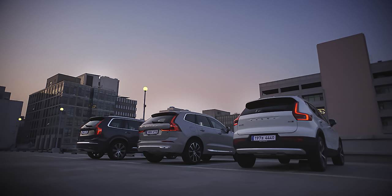 XC레인지 모두 레이더와 카메라, 초음파 센서로 구성된 ADAS 플랫폼을 기반으로 뛰어난 안전성을 자랑합니다. ‘막내’에 해당하는 컴팩트 SUV XC40에도 안전사양이 빠짐없이 적용되어 있어요. 볼보자동차가 세계 최초로 개발한 저속 충돌 방지 시스템인 ‘시티 세이프티’부터 앞 차량과 간격을 유지하며 차선 중앙에 맞춰 조향을 보조하는 ‘파일럿 어시스트’, ‘도로 이탈 완화’, ‘사각지대 정보 시스템’, ‘후측방 경보 및 후방 추돌 경고’ 등 운전 중 발생할 수 있는 다양한 사고에 대응하는 안전 사양들이 탑재되어 있습니다.