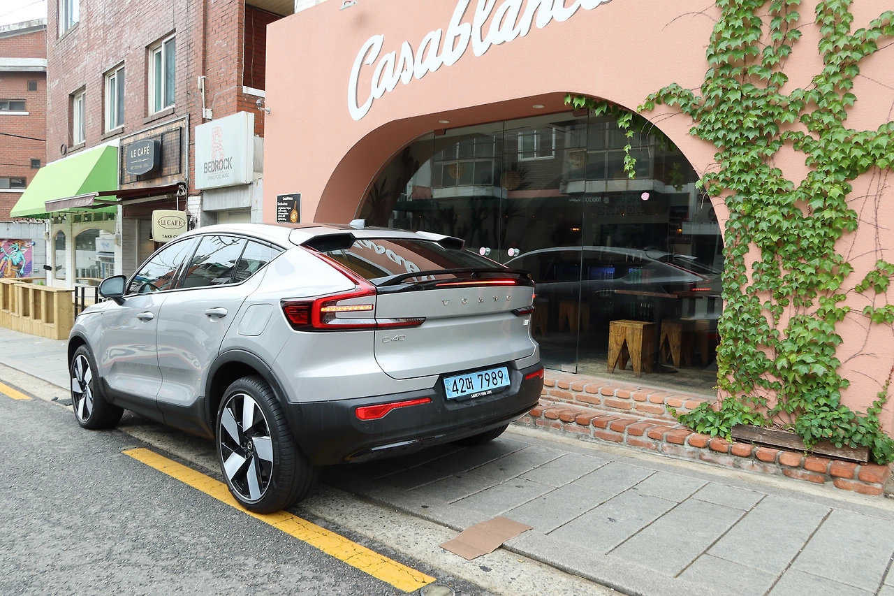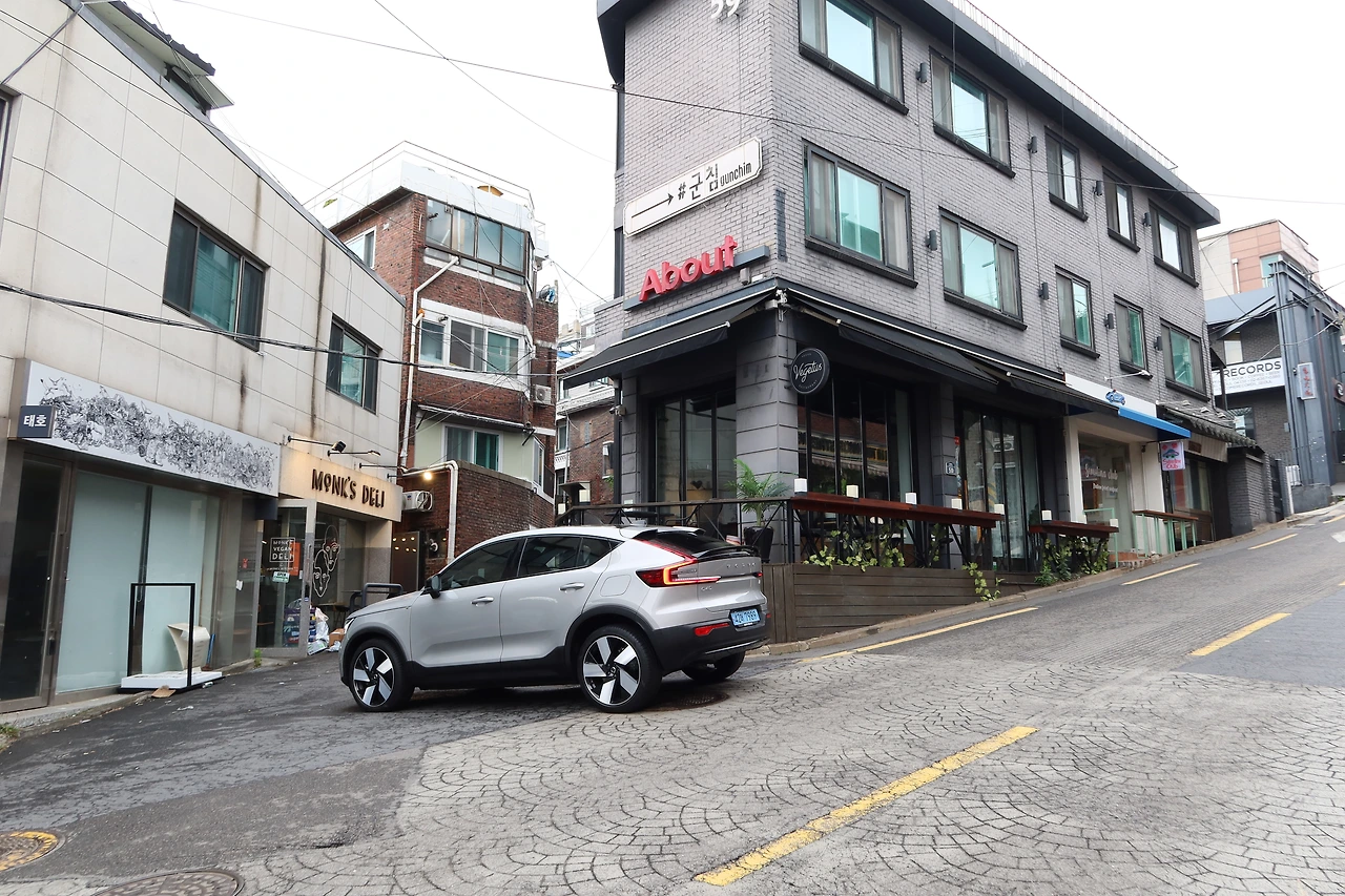 남산 하얏트 호텔을 지나 한남동 고갯길과 이태원을 거쳐 해방촌으로 향했다. C40 리차지는 가파른 경사로를 오르내리거나 좁은 골목을 누비는 데 전혀 막힘이 없었다. 초보운전 시절부터 제일 무서워하던 이태원의 가파른 골목골목을 이 차와 함께 돌아다니니 또 새로운 기분. 시야도 편안하고, 오르막에서 정차 후 출발할 때도 너무 가뿐하게 앞으로 치고 나간다.