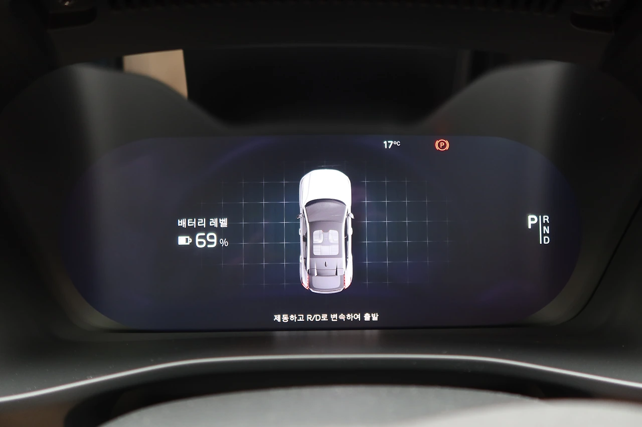 시승을 위해 차량을 인도 받는 순간부터 ‘다름’을 경험했다. 이 차는 시동 버튼이 없었다. 어떻게 시동 버튼이 없을 수 있지? 스마트키를 가진 상태로 차 문을 열었더니 배터리 잔량이나 주행 거리 등의 정보를 안내하는 ‘글랜스 뷰(Glance View)’ 기능이 작동한다. 운전석에 앉아 진짜 시동 버튼이 없는지 의심의 눈으로 구석구석 살펴봤다. 정말 없다. 알고 보니 운전석 시트에 스타트 버튼이 통합된 것. 마치 자리에 앉는 순간부터 차와 한 몸이 되는 기분이다.