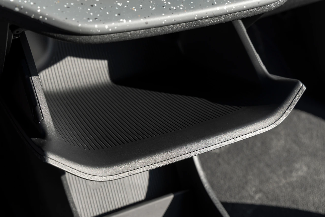 누구나, 습관적으로, 관행적으로 운전석 옆자리를 조수석이라 불렀고 그 자리의 사람이 오래 전 경운기처럼 크랭크 축을 돌려 시동을 걸 때 착용하는 장갑을 넣는 곳을 ‘글로브 박스’라고 불렀다. 그 박스는 당연하게도 조수석 앞에 위치했다. 한 세기 이상 이어진 이 관행은 너무나도 익숙해서 용도가 사라진 스타트 모터의 시대를 지나 전기차의 시대에도 이어졌다. 지금은 고작 자동차 등록증이나 메모지, 휴대용 랜턴 등을 담는 곳일 뿐인데도 말이다. EX30은 ‘글로브 박스’의 존재에 대한 근본적인 의문을 가졌다. 그리고 글로브 박스는 결국 운전석과 동승석의 중앙, 누구나 손이 닿는 한 가운데 등록증, 메모지, 랜턴을 담기 적당한 크기로 바뀌었다.