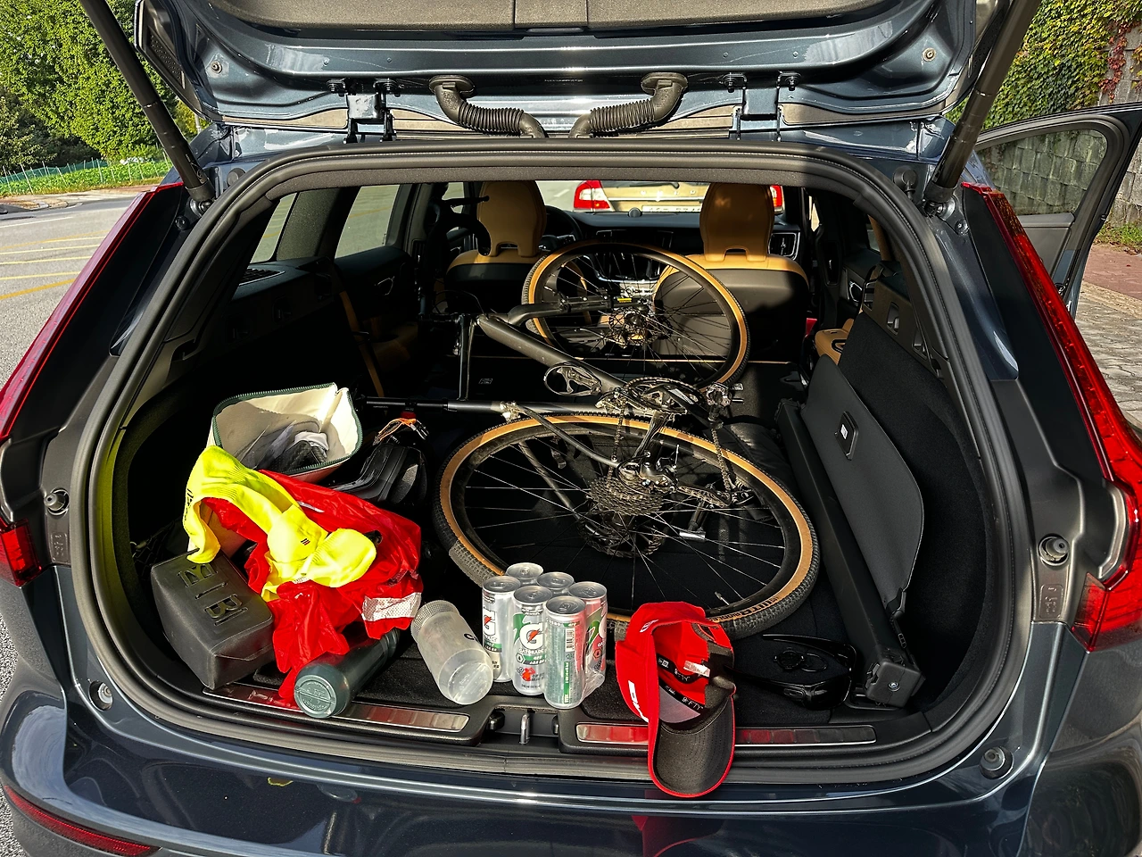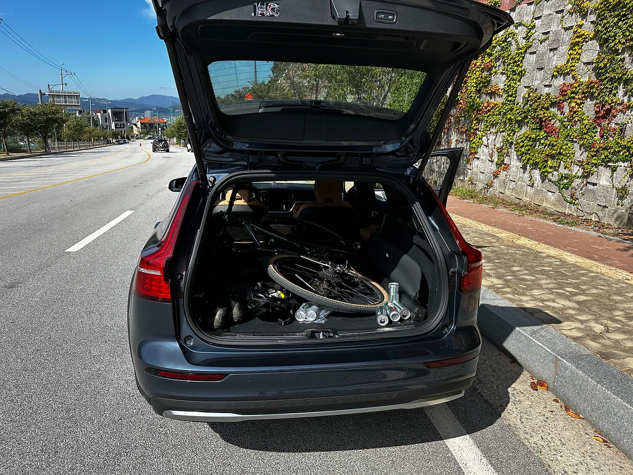 나도 그래서 V60 크로스컨트리(이하 V60 CC)에 자전거를 싣고 갔다. 뭐라고? 차 안에 싣는다고? 그렇다. 자전거 한 대를 너끈히 담아내는 적재성은 왜건을 선택했을 때 가질 수 있는 큰 만족감 중 한 가지다.