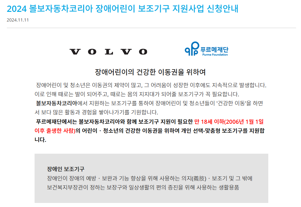 사실 볼보자동차코리아와 푸르메재단과의 인연은 이번이 처음이 아닙니다. 지난 2017년부터 이어진 동행은 올해로 8년째 이어지고 있는데요. 그동안 다양한 지원을 이어온 볼보자동차코리아는 현재까지 총 774명의 장애어린이와 청소년들에게 맞춤형 보조기구를 지원하고 이들의 건강한 이동권을 보장해왔습니다. 특히 올해 기부금 지원을 통해 지금까지 누적된 기부금만 23억원을 돌파하며 누구보다 사회공헌에 앞장서는 기업으로의 가치를 실현하고 있습니다.