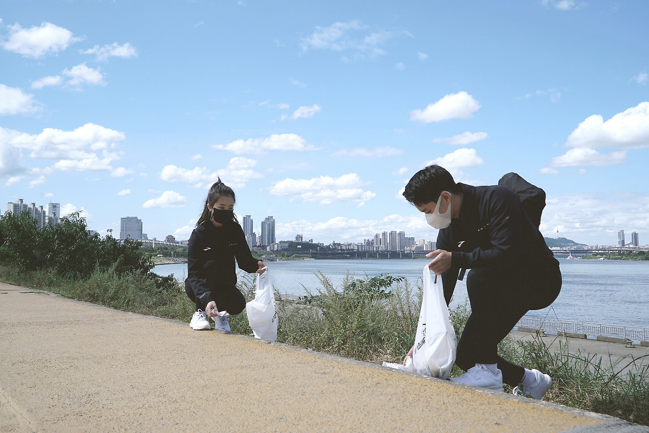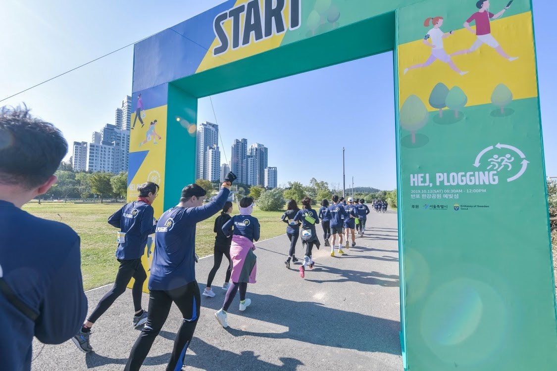 친환경 러닝 캠페인 '헤이 플로깅' 행사를 진행하며