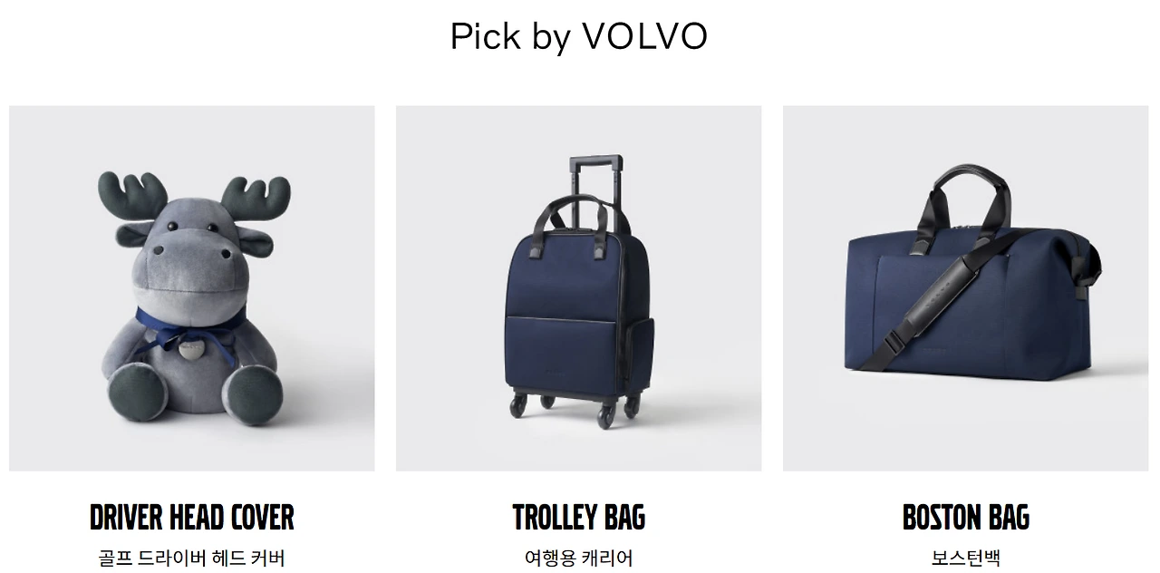 볼보 라이프스타일 숍에는 오너들이 탐낼 상품들이 다수 갖춰져 있는데요, 보스턴백, 여행용 파우치, 캐리어와 같은 여행에 반드시 필요한 용품들과 스웨덴의 상징인 순록 인형 모양의 골프 드라이버 헤드커버, 아이들과 함께 혹은 캠핑을 즐기는데 필수인 웨건, 피크닉매트, 그리고 폴딩 박스 등을 판매하고 있습니다. 향후에는 고객 대상 한정판 컬렉션 상품인 ‘익스클루시브 바이 볼보(EXKLUSIV by Volvo)’도 출시할 예정입니다.