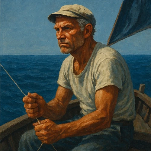 사흘 동안 끌려다니며 손이 베이고 왼손이 경련으로 굳어 가도, 노인은 멈추지 않습니다. 손바닥이 찢기면 돛 천을 찢어 응급 붕대를 만들고, 줄을 어깨로 옮겨 힘을 분산하며 끊임없이 전략을 고쳐 나갑니다. 흐릿해지는 시야 속에서도 그는 다시 한 번 줄을 당겨 결국 고기에 작살을 꽂아 넣습니다.