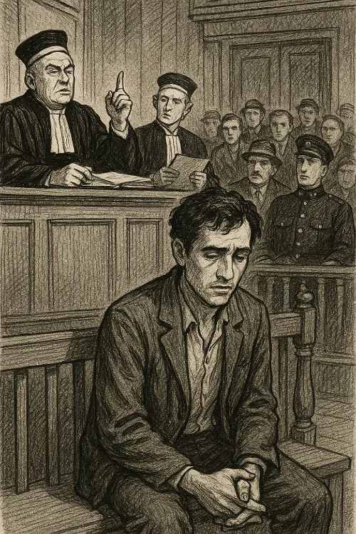 재판에서 그는 태양이 뜨거워서 그랬다고 합니다. 하지만 사람들은 그가 사람을 죽였다는 사실보다 어머니의 죽음을 애도하지 않는 모습에 더 분노합니다. 그는 결국 사형 선고를 받게 되죠.