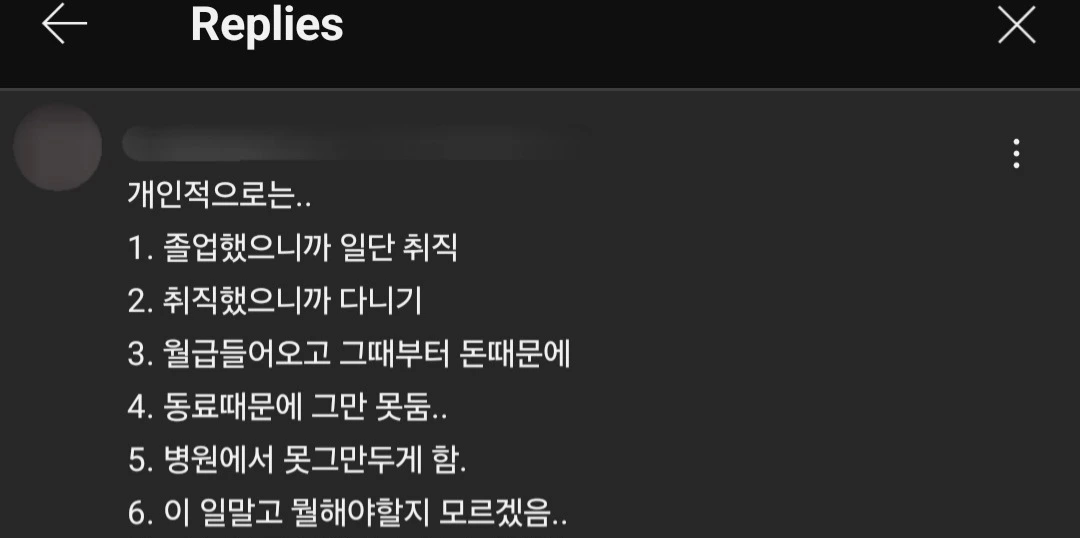 제가 겪는 일련의 고충들이 '신규' 간호사여서인지 신규 '간호사'여서인지, '한국에서의' 간호사가 싫은 건지, 한국에서의 '간호사'가 싫은 건지 확신이 서지 않아서요.