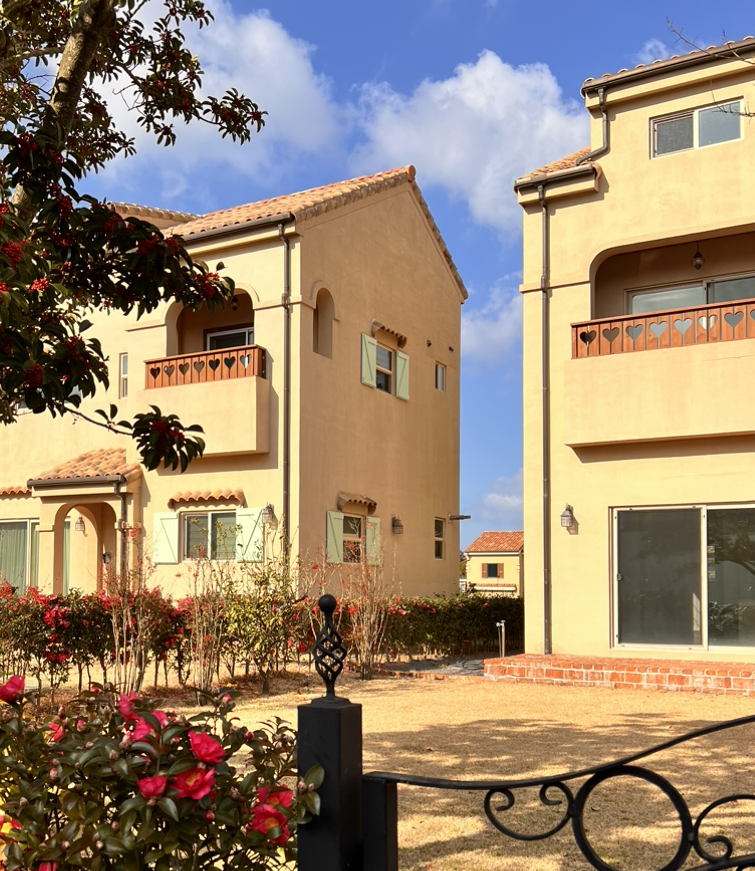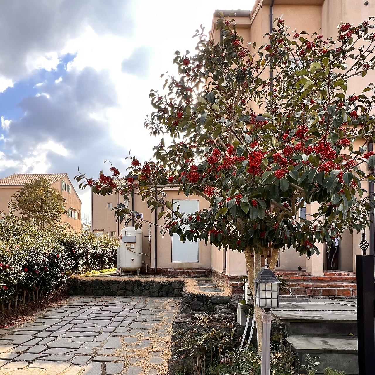 베이지 색의 주택들이 여유롭게 배치되어 있는 단지에 들어서니 울타리마다 새빨간 동백꽃들이 활짝 피어있고 참새처럼 작은 새들이 여기저기 짹짹대며 날아다녔다. 어느 유럽의 시골마을 같은 평화로운 풍경이었다. 이날 따라 겨울답지 않게 해도 어찌나 따뜻하던지- 너무 좋아서 미간을 찌뿌린채 남편의 어깨를 두드려가며 어떡해 어떡해 하며 예쁘다고 호들갑을 떨었다.