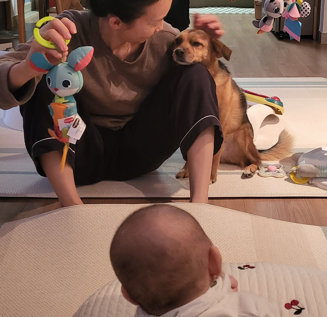 개들은 이미 귀여움 하나로 모든 몫을 충실하게 다하고 있는데 이렇게 언니의 사회생활 치트키로 또 한 몫을 더했다. 포근한 방석, 함께한 산책, 7년간 먹어온 간식을 잊지 않고 이렇게 은혜를 갚는다.