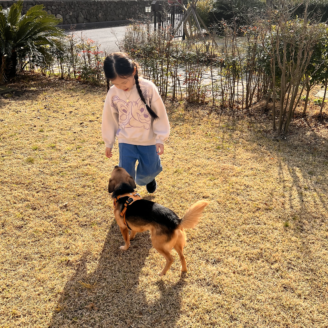 이사 후 가장 높은 만족도는 단연 마당이다. 내게는 마당이 있고, 개와 애가 있다. 최고의 조합이다.