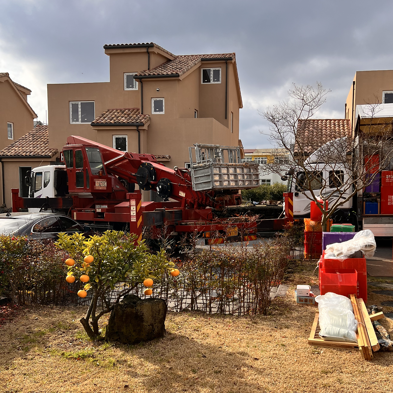 또, 마당 혹은 집 뒤쪽으로 차량 진입이 가능한지에 따라 사다리차 사용여부가 달라진다. 우리 같은 경우 마당 크기가 꽤 큰데 차량이 들어갈 수 없는 구조라 사다리차 사용이 불가능했다. 대신 ‘스카이차'라는 것을 불렀는데, 시간당 금액이 상당하고 미리 예약이 필요할 수 있으니 사다리차 이용여부를 꼭 미리 확인하는 것이 좋다.