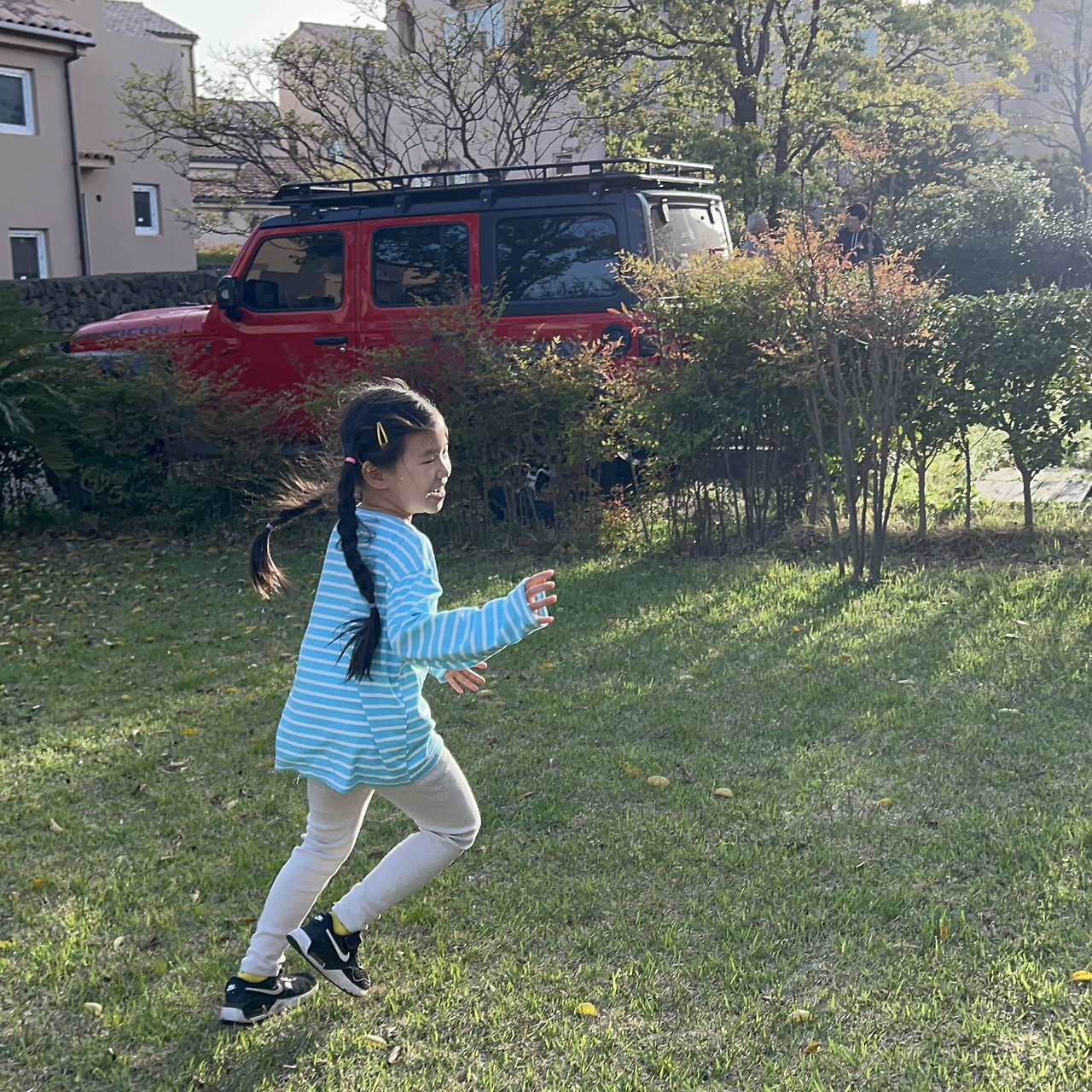 특히 첫째에게는 최적의 환경이다. 거실에 앉아 있으면 킥보드나 자전거를 타고 있는 동네 친구들이 지나가고, 그 모습을 본 첫째는 금방 신발을 신고 달려 나간다. 갑작스럽게 킥보드 경주가 시작되기도 하고, 서로의 집에 들어가서 놀다 온다.