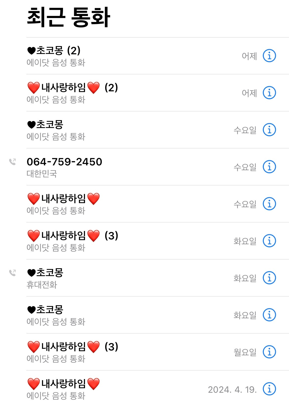 나의 최근 통화내역...남편은 대부분 같이 있는데도 전화를 참 많이 하는구나..^^*