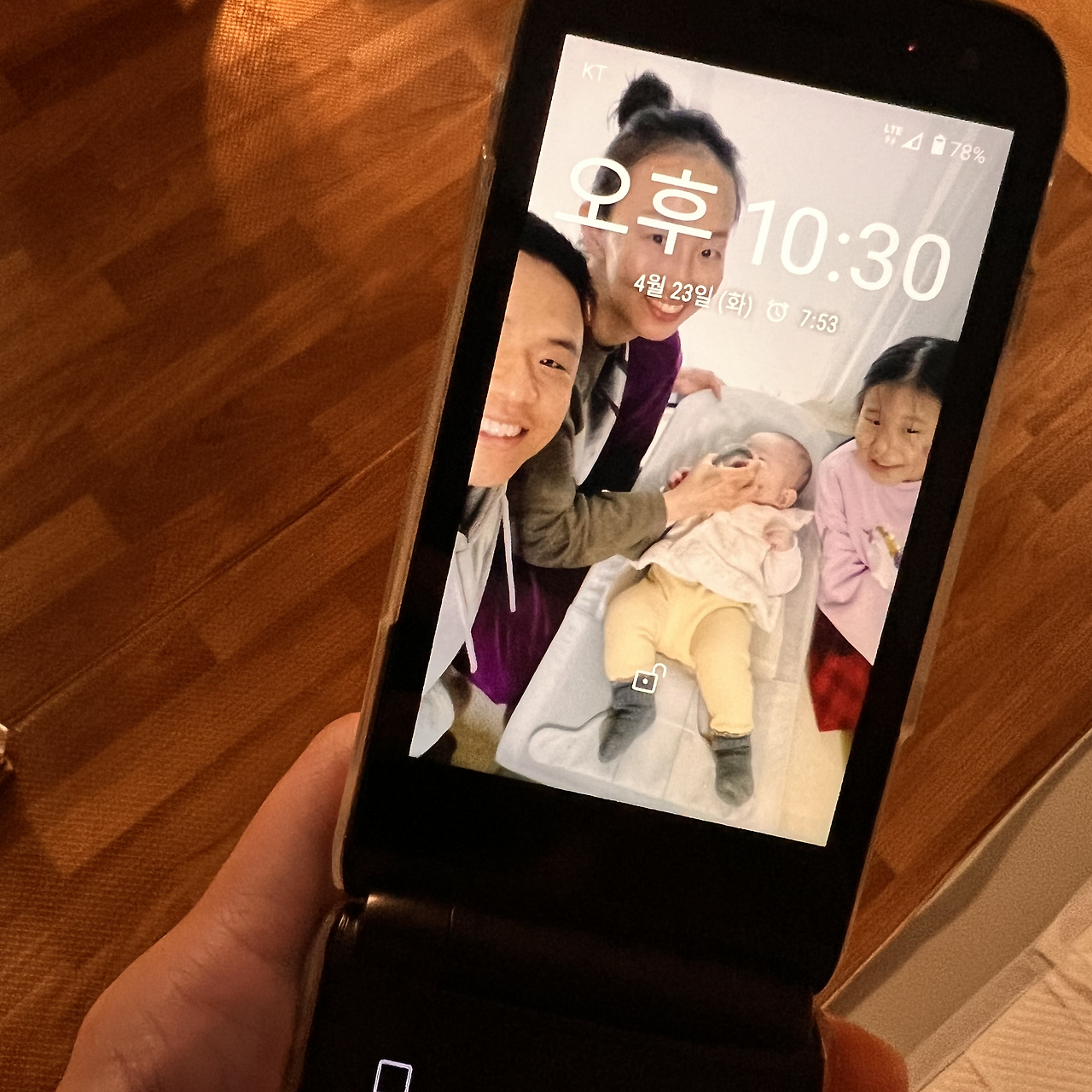 제일 먼저 연 것은 카메라 앱이었다. 다 같이 가족셀카를 찍자고 한다. 학교에서 얼마나 뛰어놀았는지 머리가 다 흐트러진 첫째, 그 옆엔 똥머리를 틀어 올린 채 둘째의 분유를 먹이고 있는 맨 얼굴의 나, 분유병에 얼굴이 다 가려진 둘째, 자다 일어난 것처럼 눌린 머리의 남편. 이렇게 넷이 둘째의 바운서 근처에 옹기종기 모여 사진을 찍었다.