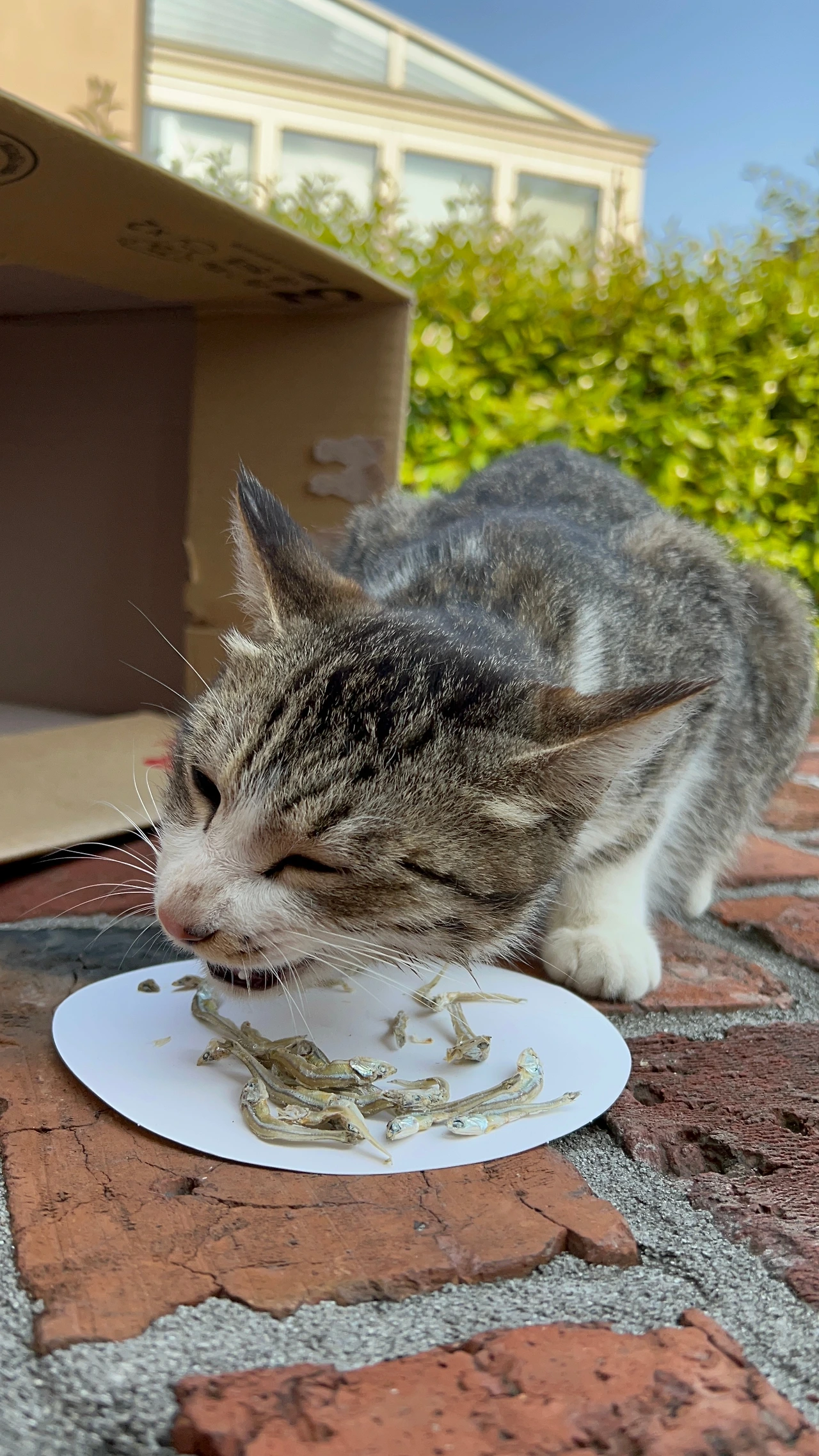 - 네. 사람을 무서워하지는 않는 것 같아요. 아침에는 앞집에 계속 들어가려고 하더니 이번엔 저희 집으로 왔네요. 먹을 게 없어서 참치캔 하나 줬어요.