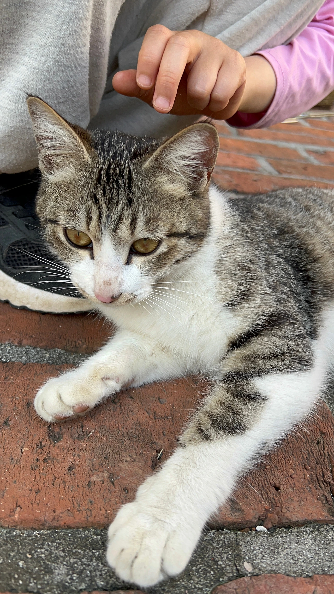 인사를 하고 이제 집에 막 가려던 차, 시끌시끌 소리가 나서 쳐다보니 몇몇 아이들이 돌담 근처에 모여있고 돌담 위에는 회색 줄무늬 고양이 한 마리가 우뚝하니 서있다. 입에 무언가 물고 있어 혹시 쥐인가 싶었는데 자세히 보니 새끼 고양이다. 고양이가 아이들을 마주치고는 다시 돌아가지도, 땅으로 내려가지도 못하고 있는 모양이다.