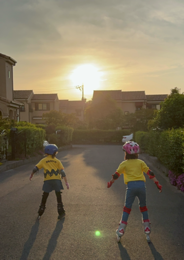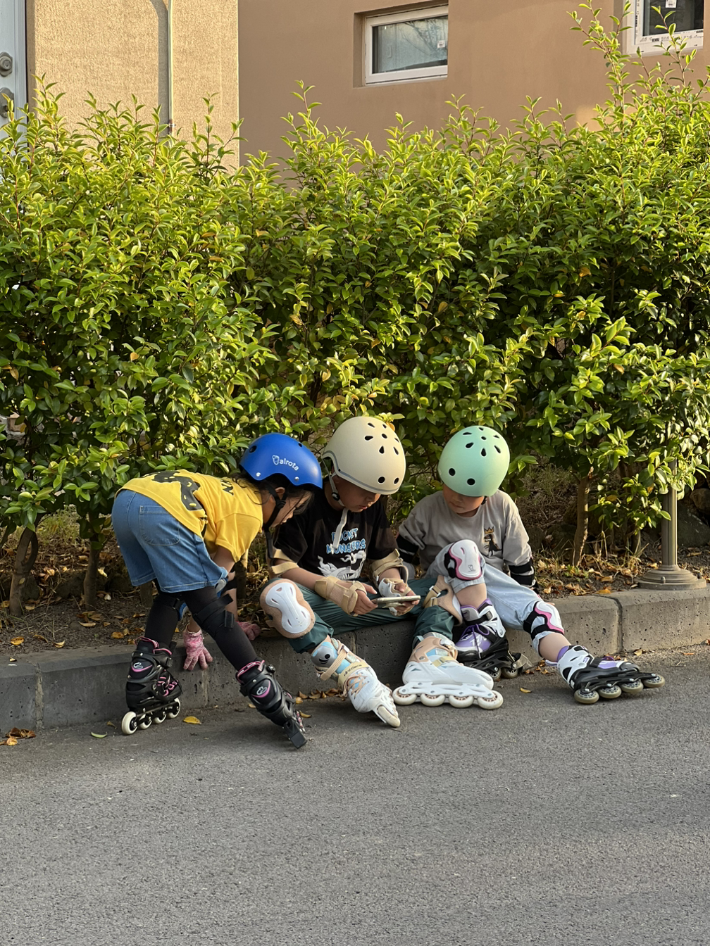 한두 명이 나와서 나와 탄 날을 시작으로 너도나도 집에 처박혀 있던 스케이트를 신고 나와서 단체로 비틀거리며 맹연습이다. 다 같이 헬멧을 쓴 모습도 정말 귀엽다.