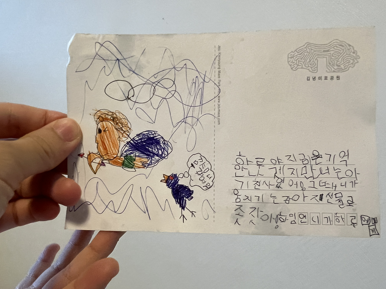 당연히 있을 리가 없다. 병원에 가려고 경황없이 엘리베이터를 기다리던 와중에 하임이가 내놓은 답장이 눈에 띄었고 하임이가 엘레베이터에 타는 사이에 집어 냉큼 잠바 주머니에 넣었으니까. 나의 순발력이 빛을 발하는 순간이다.