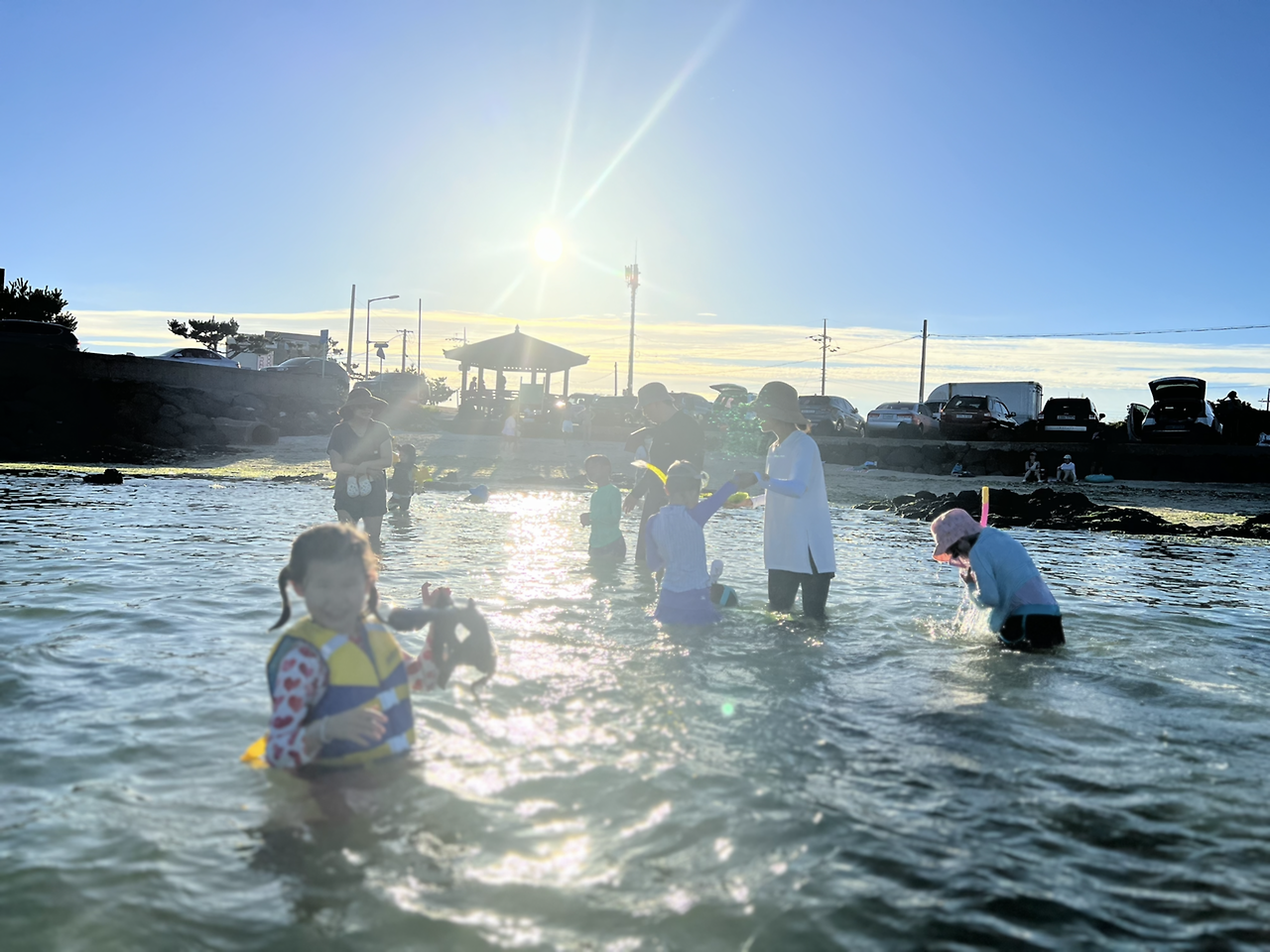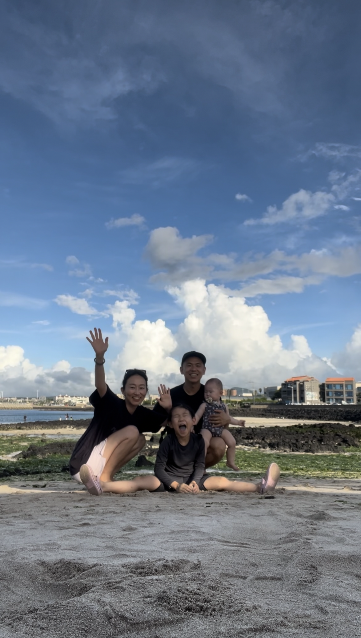 제주의 여름 날씨는 사우나라도 들어온 것처럼 뜨겁고 습하기 때문에 다들 이른 아침이나 해 질 녘쯤 수영을 추천했다. "오 그런 방법이 있군요! 한번 도전해 봐야겠어요." 하고 호기롭게 대답했지만 막상 1학년 첫째와 8개월짜리 둘째가 있다 보니 실행하기가 너무나 어려운 미션이었다.