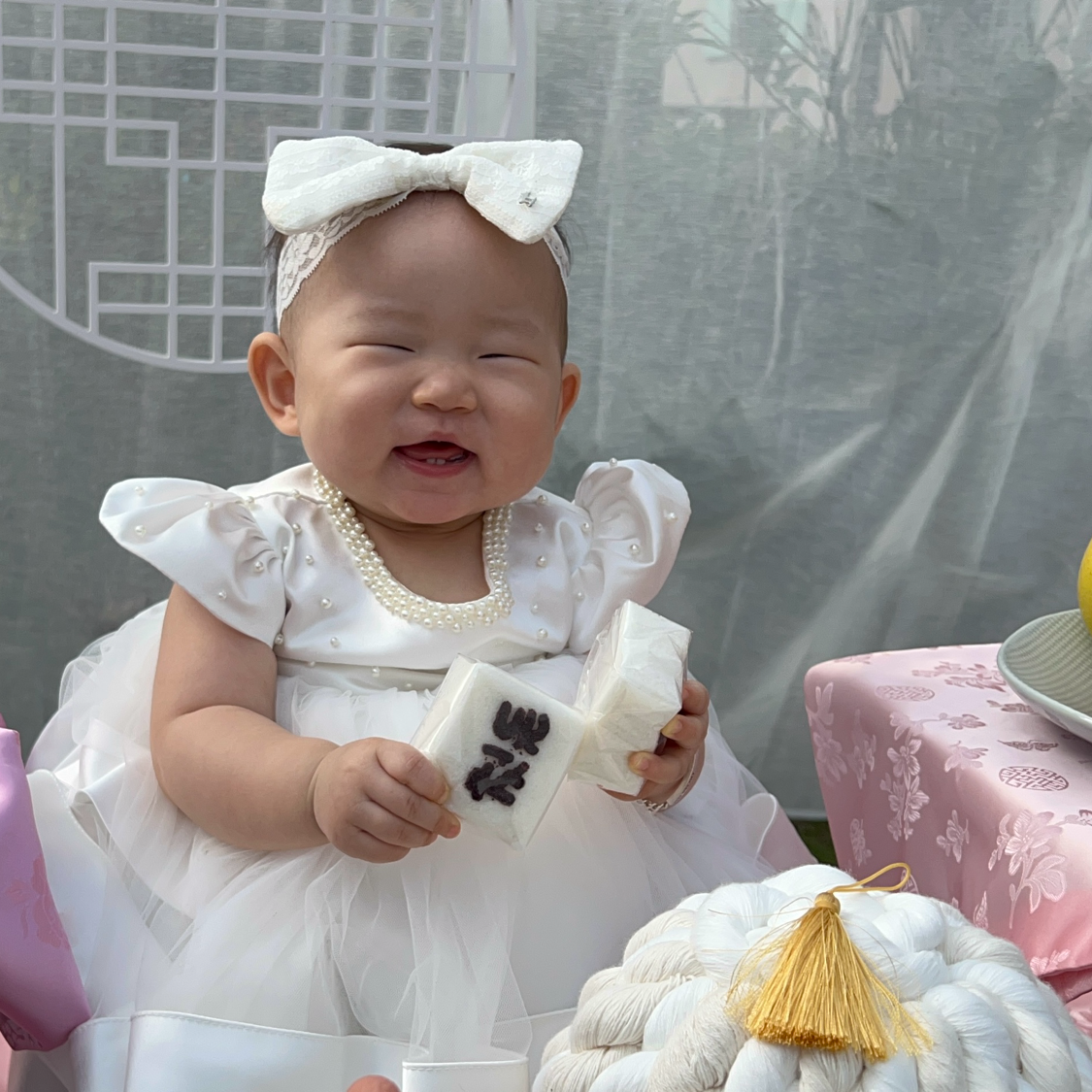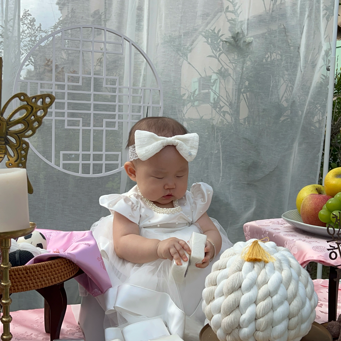 한복을 입은 아기의 조바위에 머리숱 없는 둘째의 민머리가 자꾸 보여 온 가족이 배를 잡고 웃고, 돌상 앞에서 가족사진을 찍고 있으니 손님들이 하나 둘 인사를 하며 마당으로 들어섰다.
