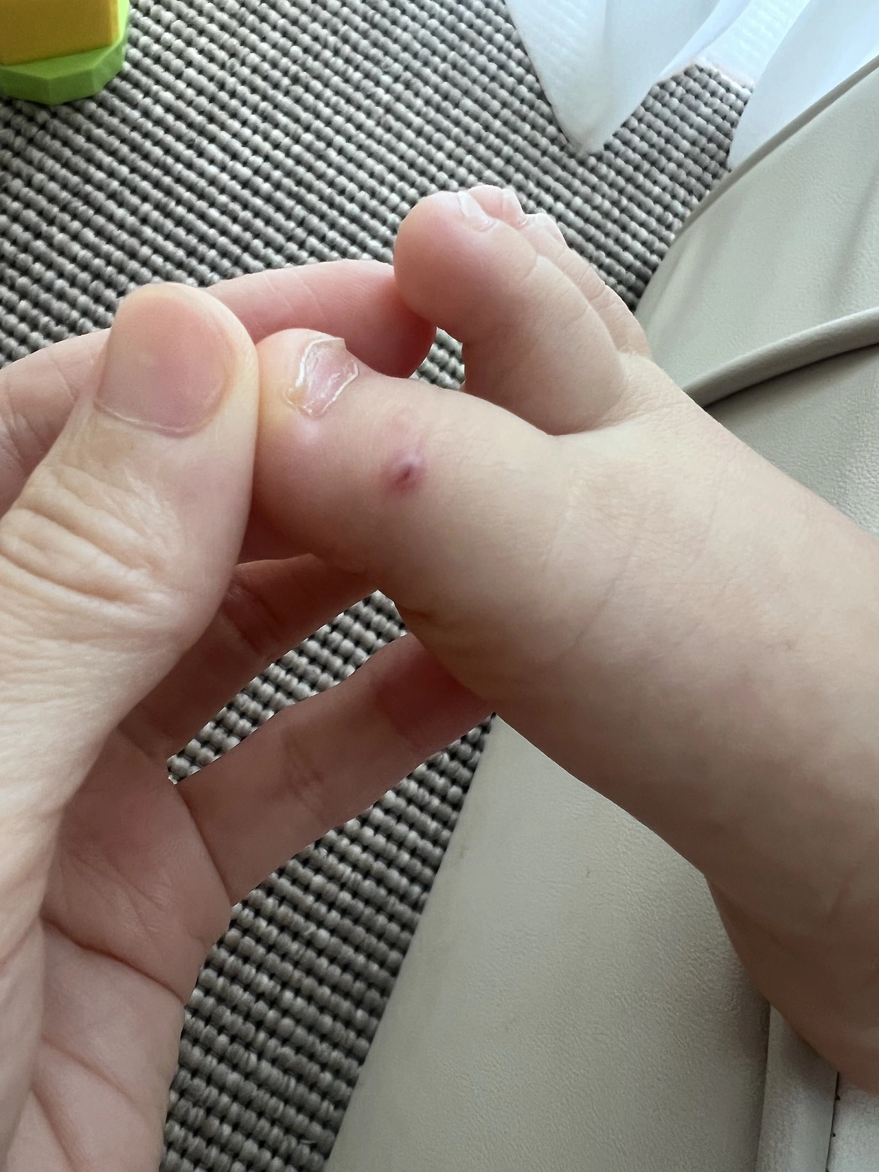 그런데 이번 일요일에 하루 손발의 아주 작은 수포로 방문한 병원에서 수족구 판정을 받고 말았다. 하임이 키우는 동안 가장 힘들게 아팠던 때가 수족구였어서 엄마아빠도 하루의 수포를 보자마자 가슴이 덜컥 내려앉았는데 아니나 다를까 수족구가 맞다고 하셨지.