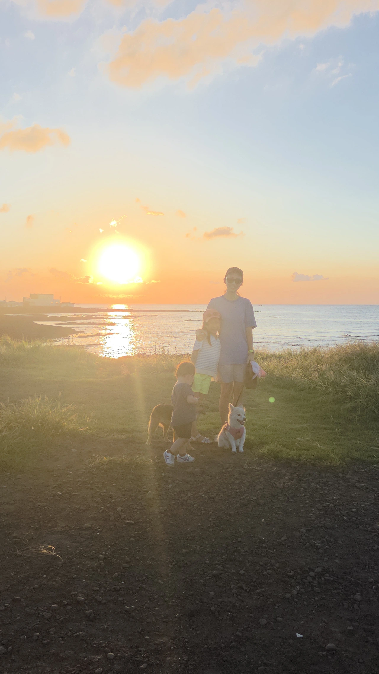 그래서 해지기전 개들까지 데리고 모두 바다 산책을 나섰는데..그동안 고생한 것을 위로라도 하듯 그 어느때보다 아름답고 황홀한 석양을 만났다. 습기찬 몸과 마음에 햇볕을 잔뜩 쬐고 바짝 말려 돌아왔어.