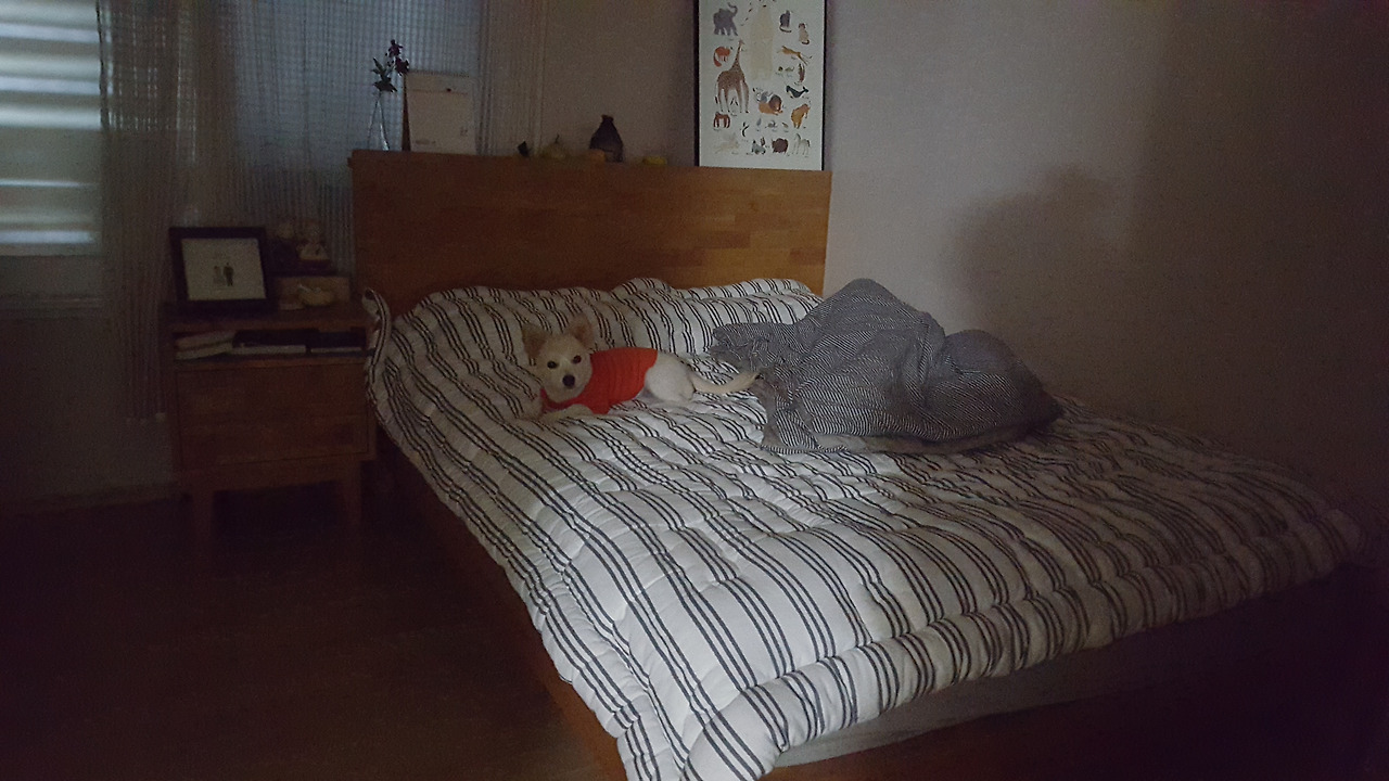 콩이가 잠들자 보리도 잠잠해졌고, 집안에 평화가 찾아왔다.