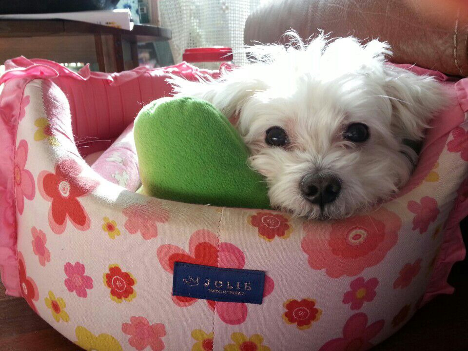 말티즈 치고는 작지 않은 덩치였지만 뽀얗고 하얀 털에 새까만 눈과 코가 너무나도 이뻤던 얼굴. 모든 사람과 개들에게 너무 착하고 바보 같았던 내 동생. 잘 때는 우스꽝스러운 포즈와 표정으로 세상모르게 잠들고, 신나면 온 집안을 우다다 뛰어다니고, 싫어하는 발톱 깎기나 귀 청소를 할 때에는 꾹- 참다가 끝나고 나면 왕왕! 자기 괴롭혔다고 소심하게 뛰어다니며 화를 내서 온 가족을 웃겨주었다.
