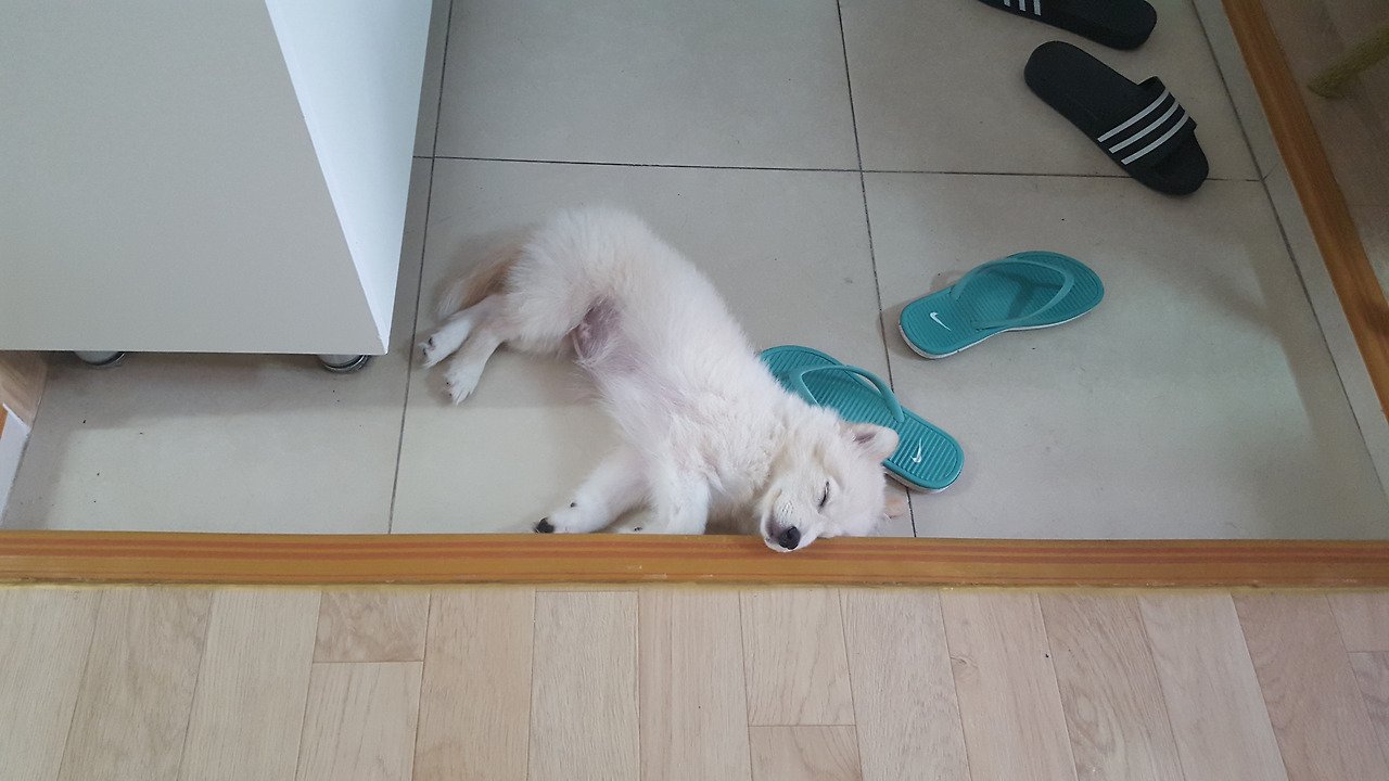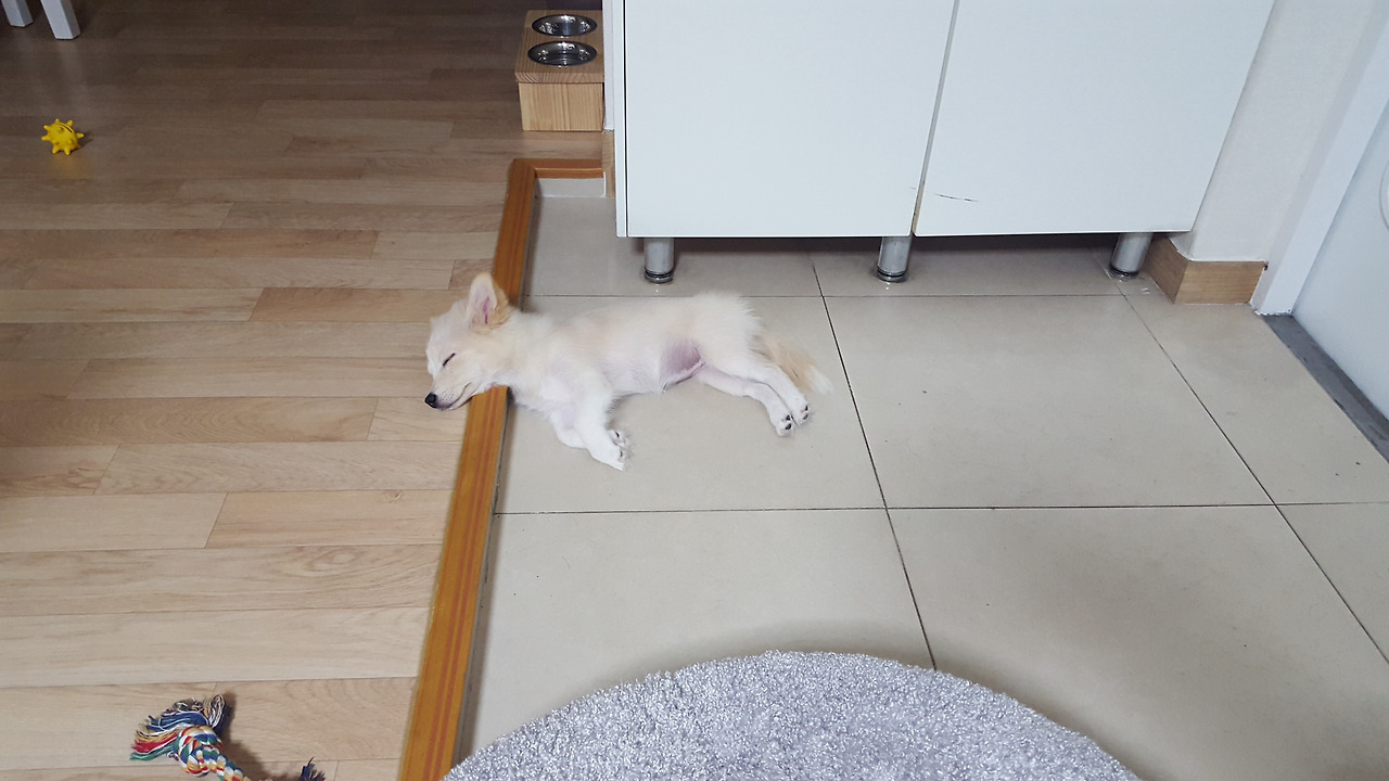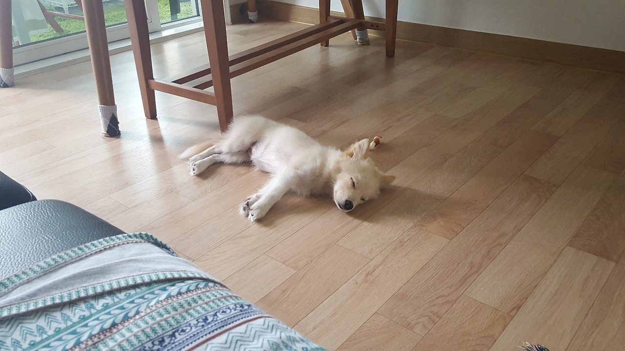 우리가 출근하면 보리가 집에서 혼자 하루종일 기다려야 한다는 것이 안쓰러웠다. 회사에 출근해서도 볼 수 있도록 안 쓰는 휴대폰에 cctv 어플을 설치했는데, 내 걱정이 무색하게 보리는 신나게 장난감을 가지고 놀다가 오후 내내 팔자 좋게 늘어져 자고 있었다.
