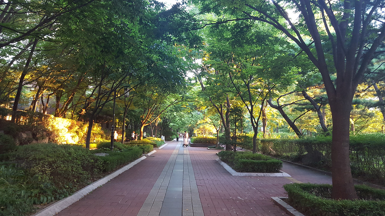 20년이 넘은 아파트이지만 단지 내 산책로가 잘 정리되어 있고, 연식이 오래된 나무들이 울창하게 자라 계절이 바뀔 때마다 여느 명소 못지않은 풍경을 연출한다.